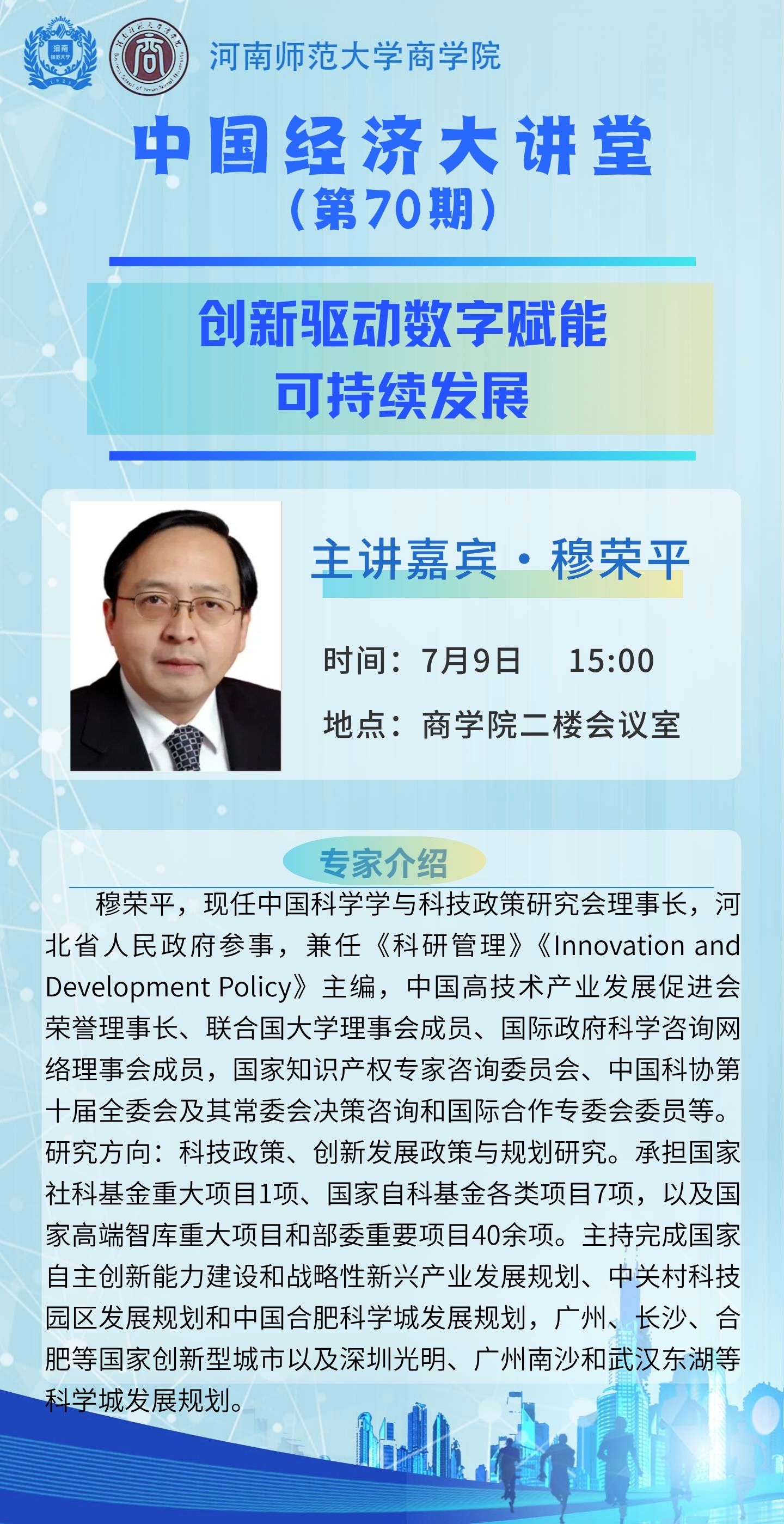 中国科学院穆荣平研究员将应邀做客“中国经济大讲堂”