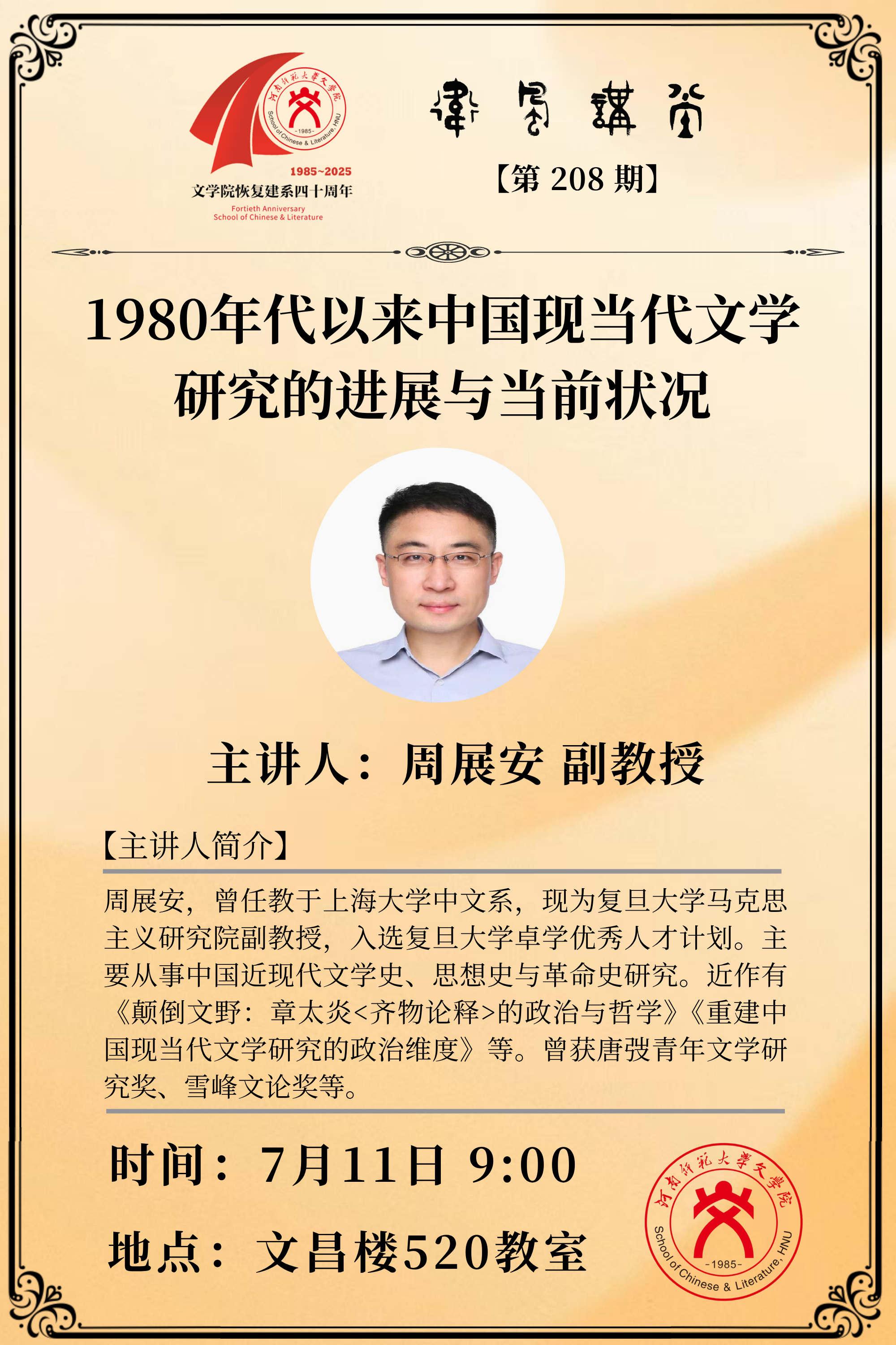 复旦大学周展安副教授将应邀做客“卫风讲堂”