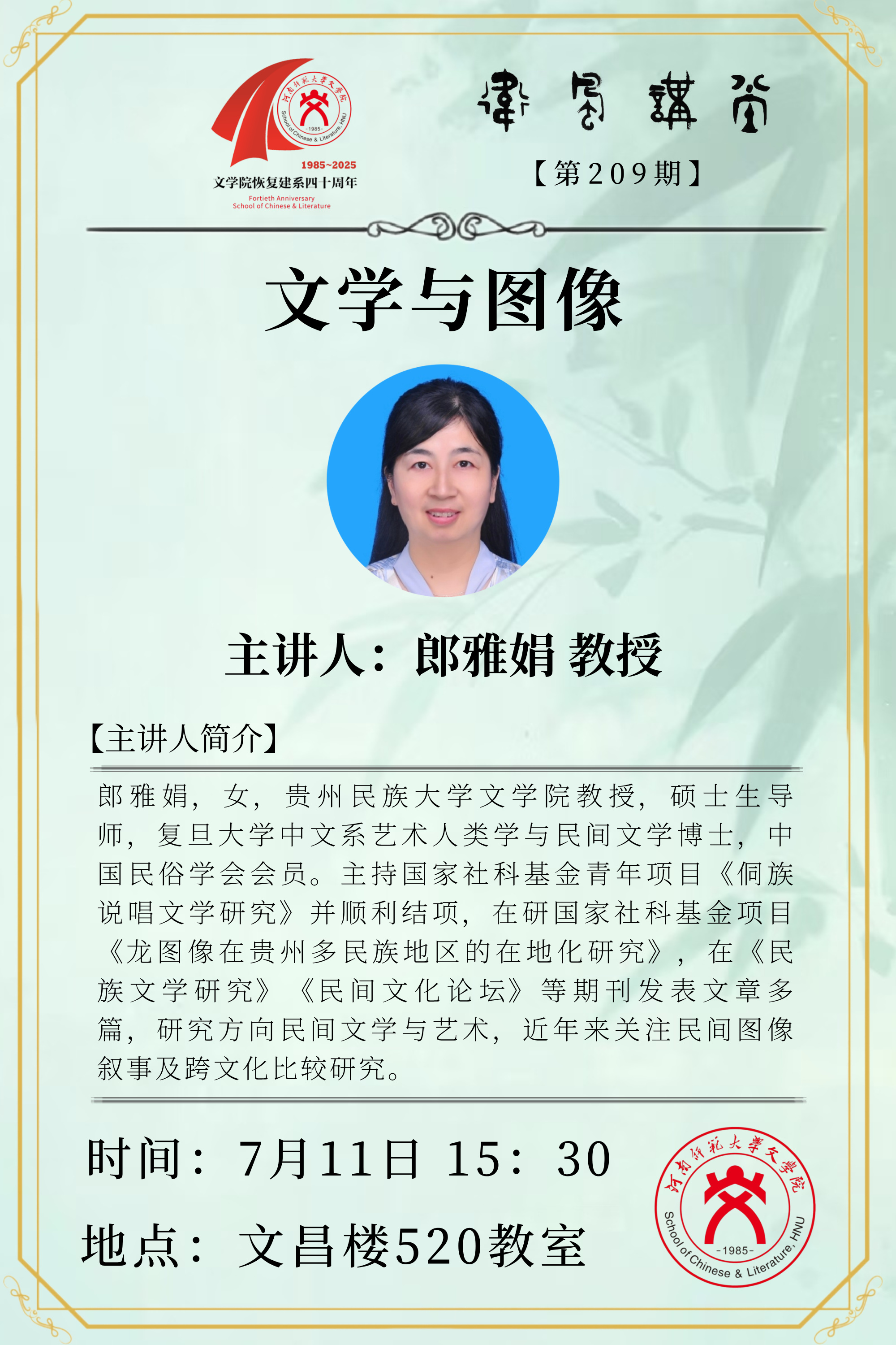 贵州民族大学郎雅娟教授将应邀做客“卫风讲堂”