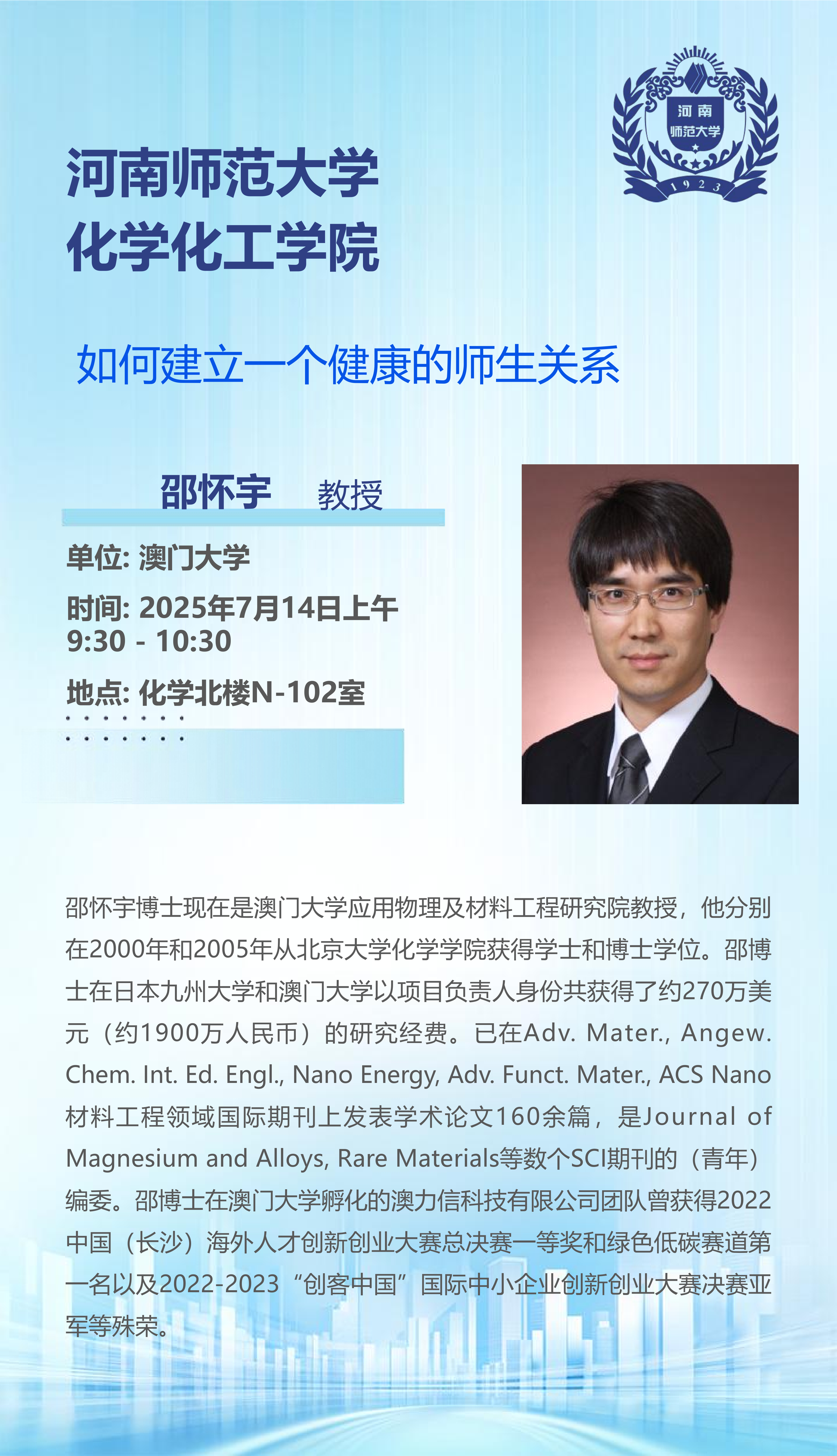 澳门大学邵怀宇教授将应邀做客“俊甫讲堂”