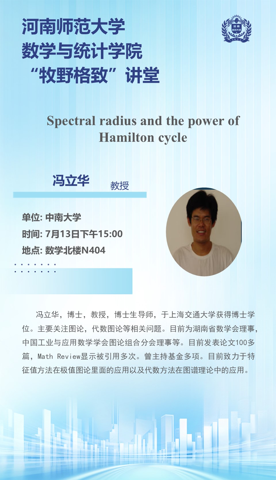 中南大学冯立华教授将应邀做客“牧野格致”讲堂