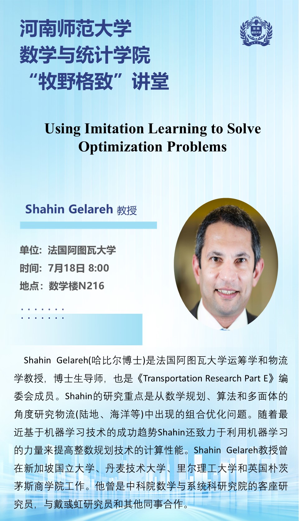 法国阿图瓦大学Shahin Gelareh教授将应邀做客“牧野格致”讲堂
