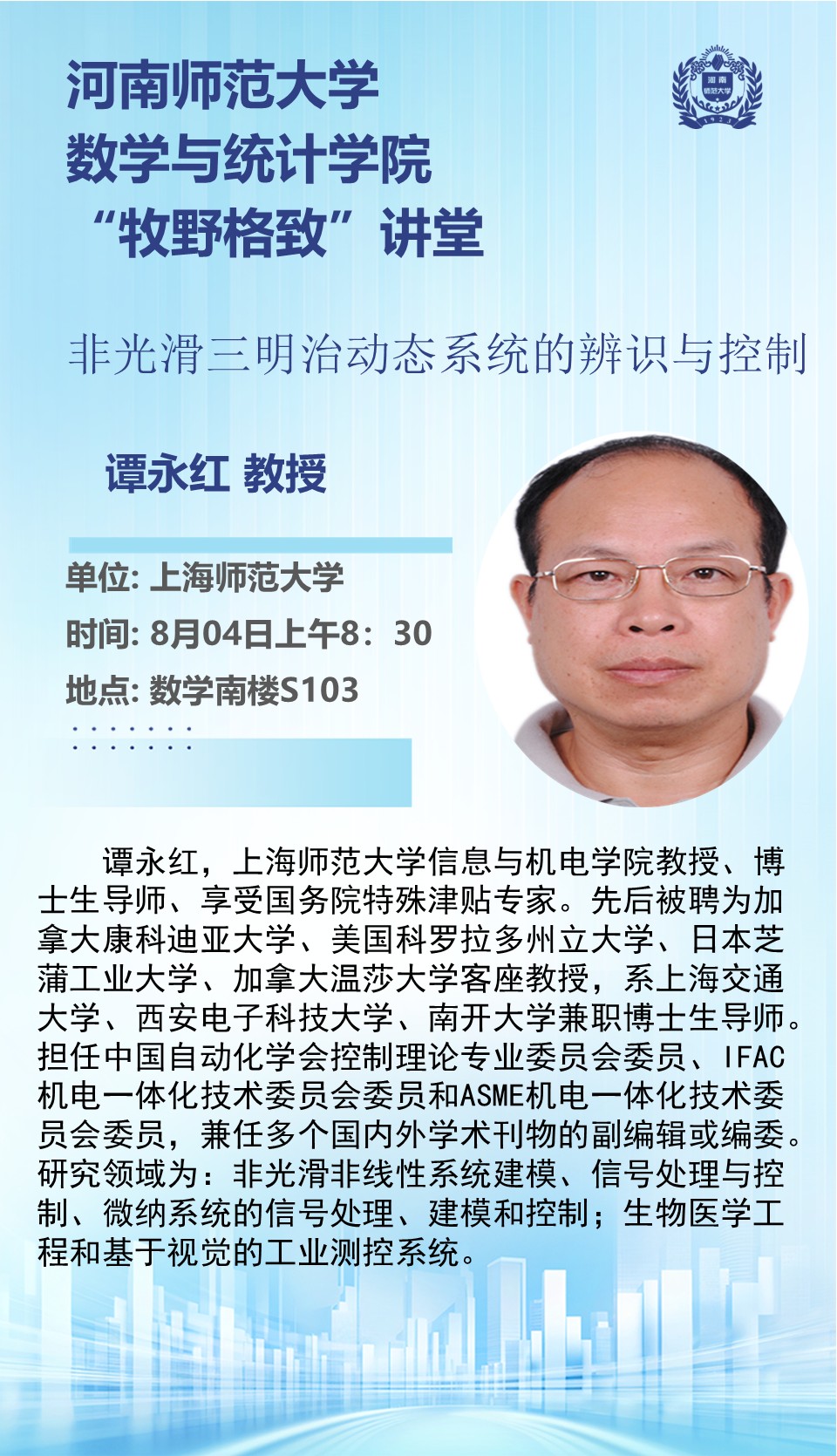 上海师范大学谭永红教授将应邀做客“牧野格致”讲堂