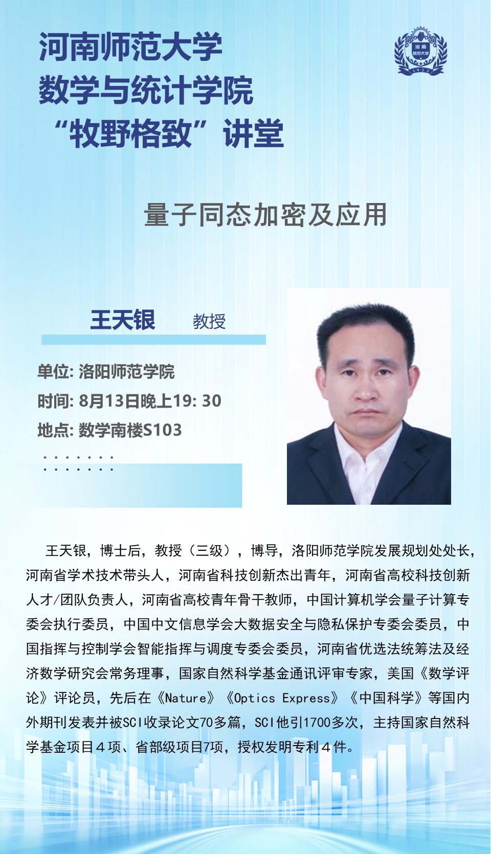洛阳师范学院王天银教授将应邀做客“牧野格致”讲堂