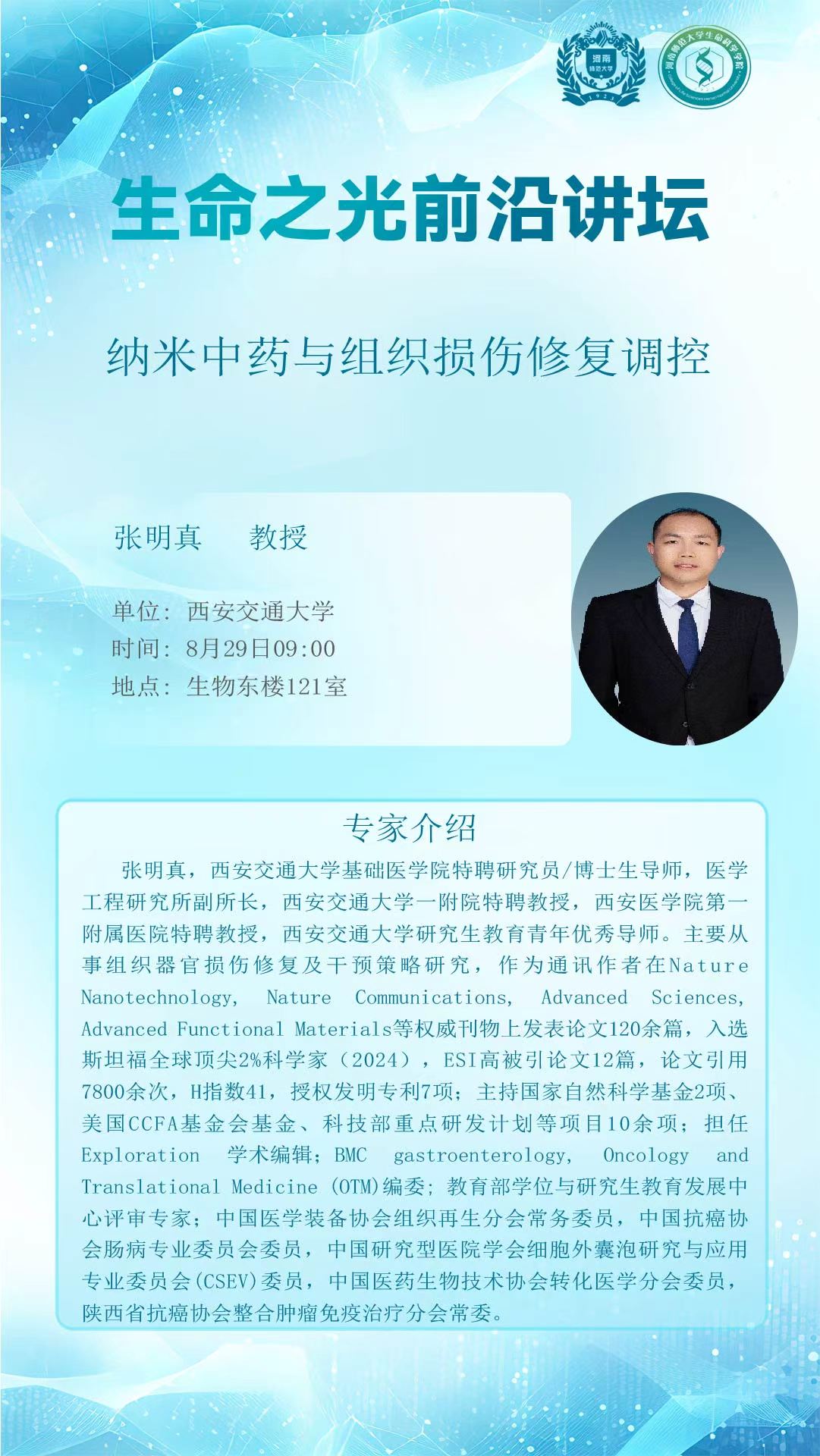 西安交通大学张明真教授将应邀做客“生命之光”前沿讲坛