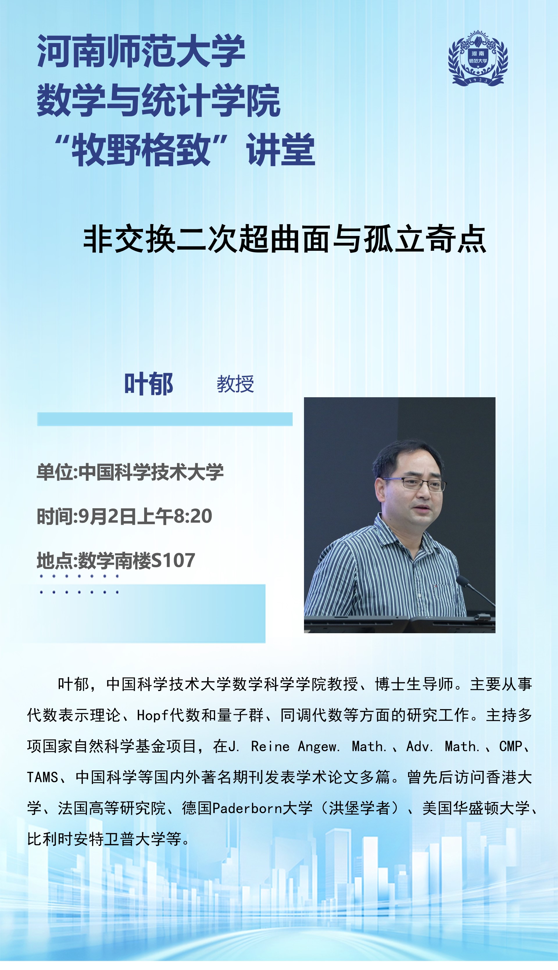 中国科学技术大学叶郁教授将应邀做客“牧野格致”讲堂