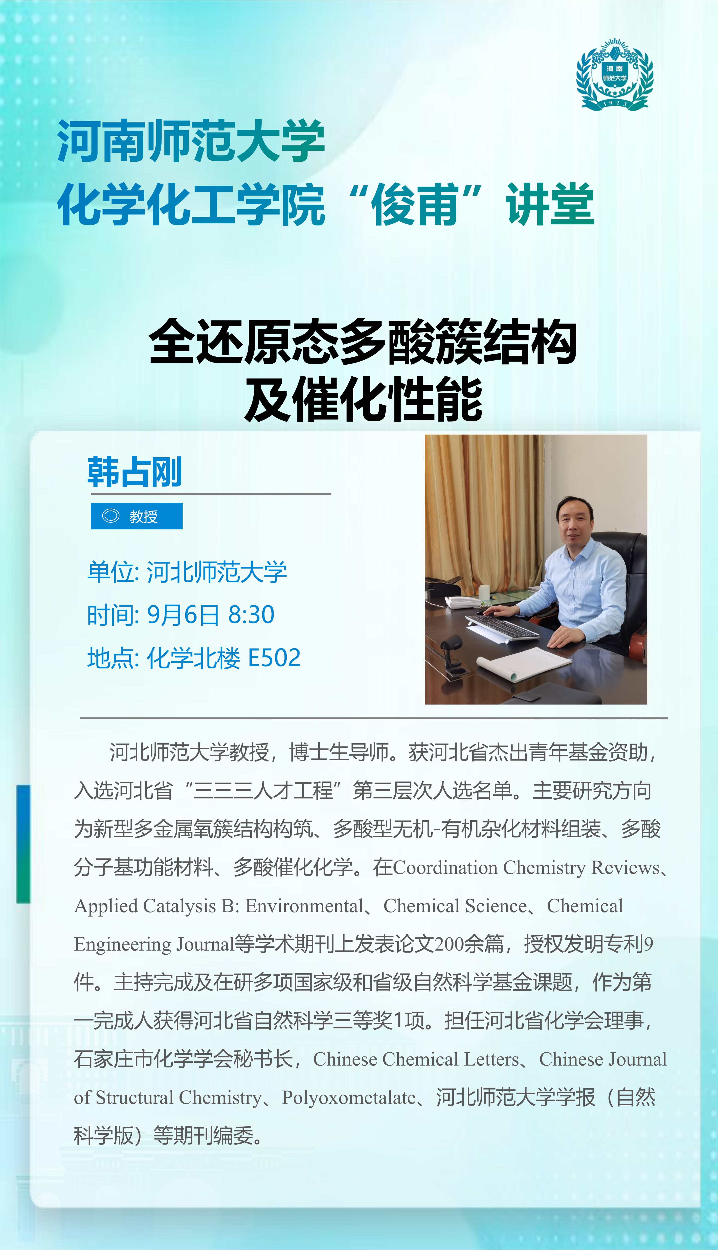 河北师范大学韩占刚教授将应邀做客“俊甫讲堂”