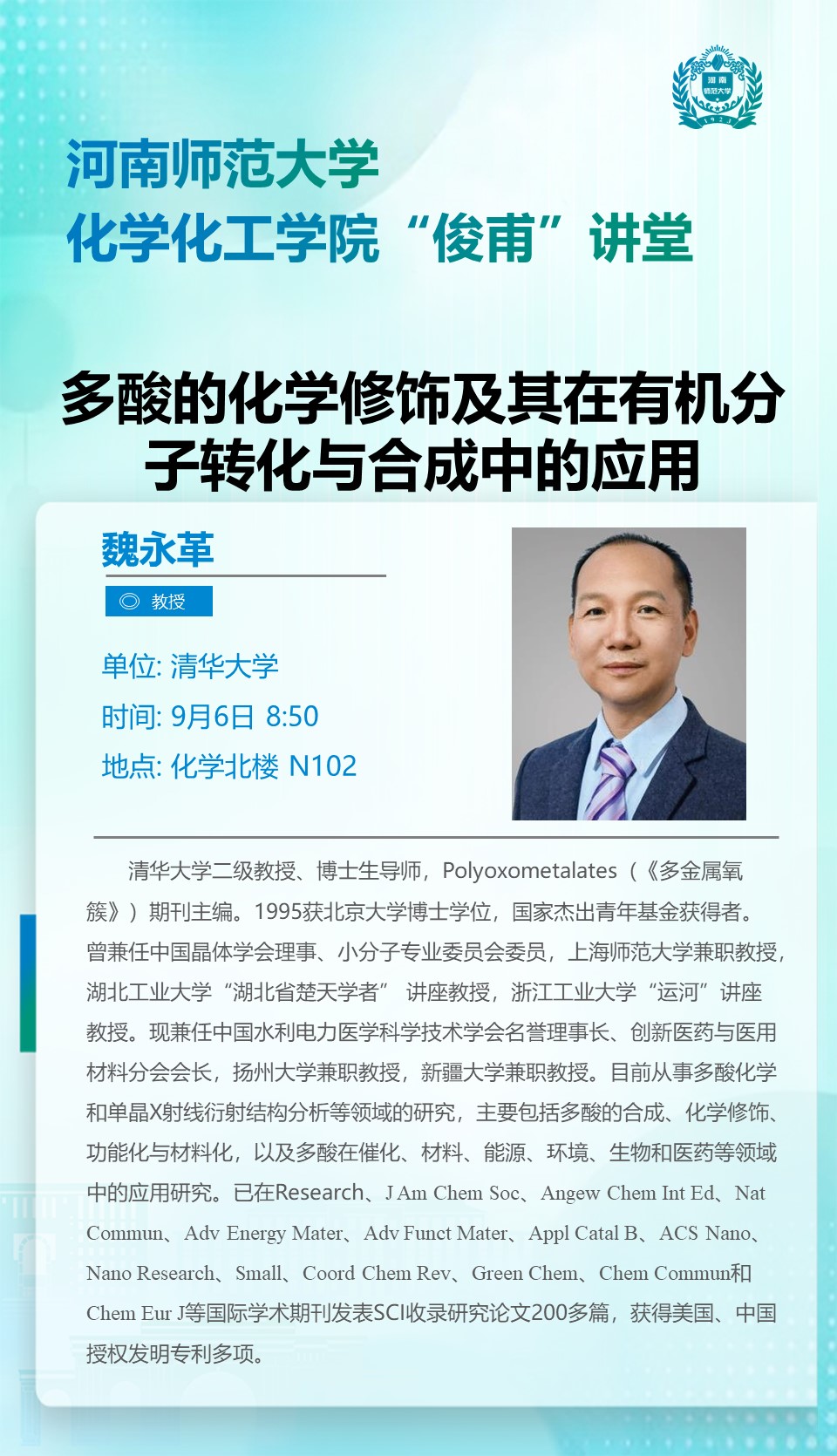 清华大学魏永革教授将应邀做客“俊甫讲堂”