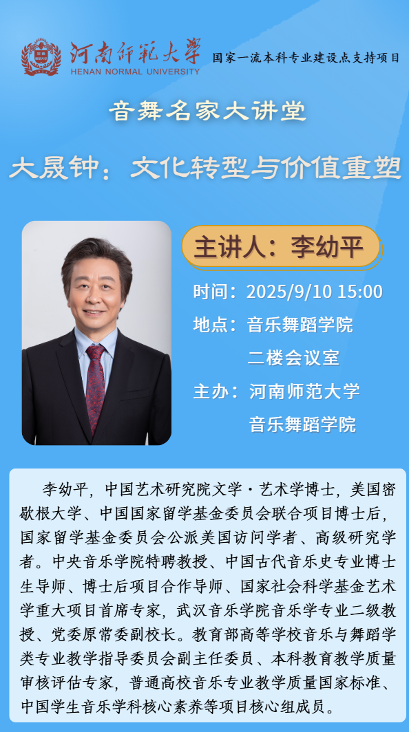 武汉音乐学院李幼平教授将应邀做客“音舞名家大讲堂”