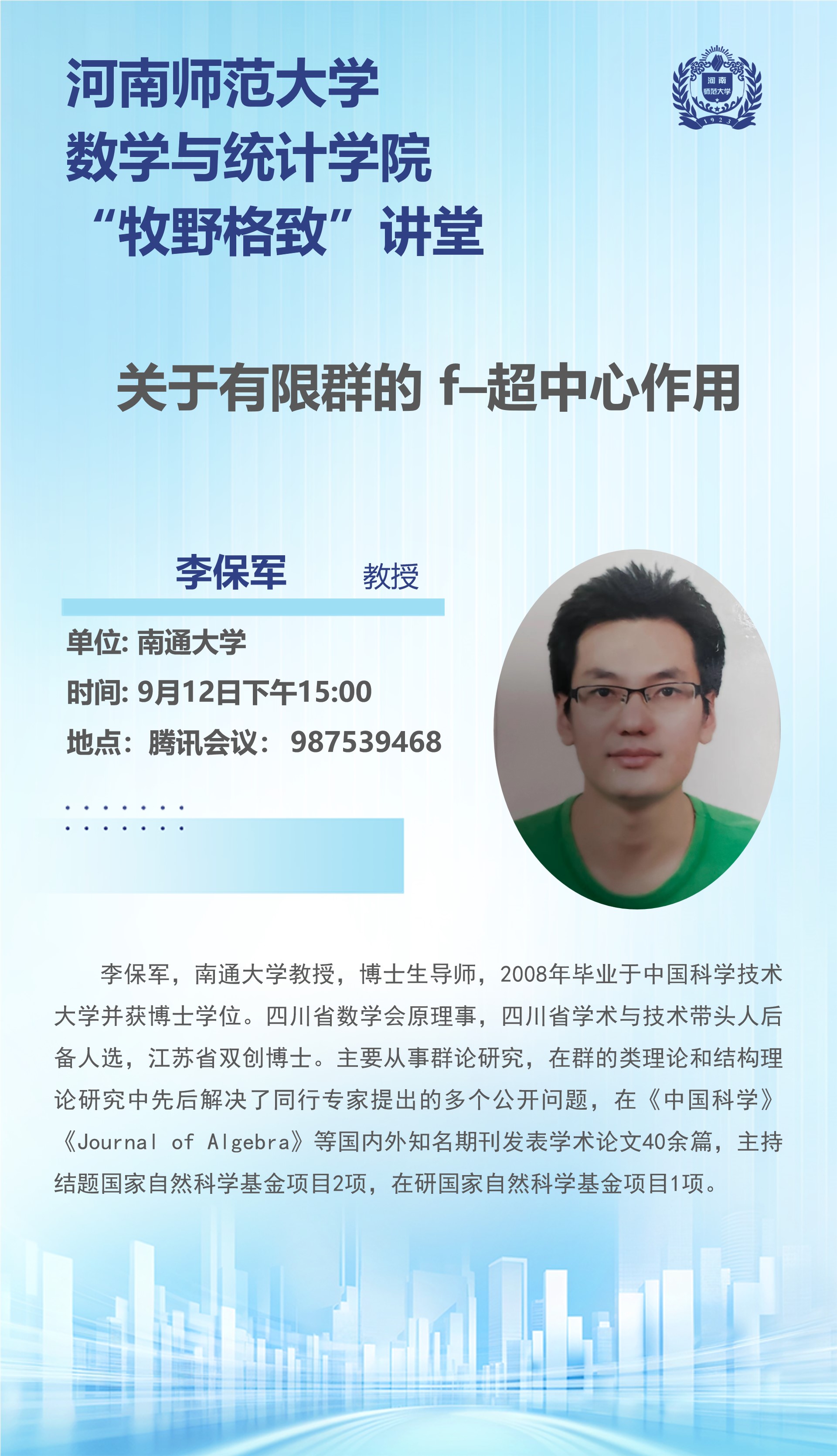 南通大学李保军教授将应邀做客“牧野格致”讲堂