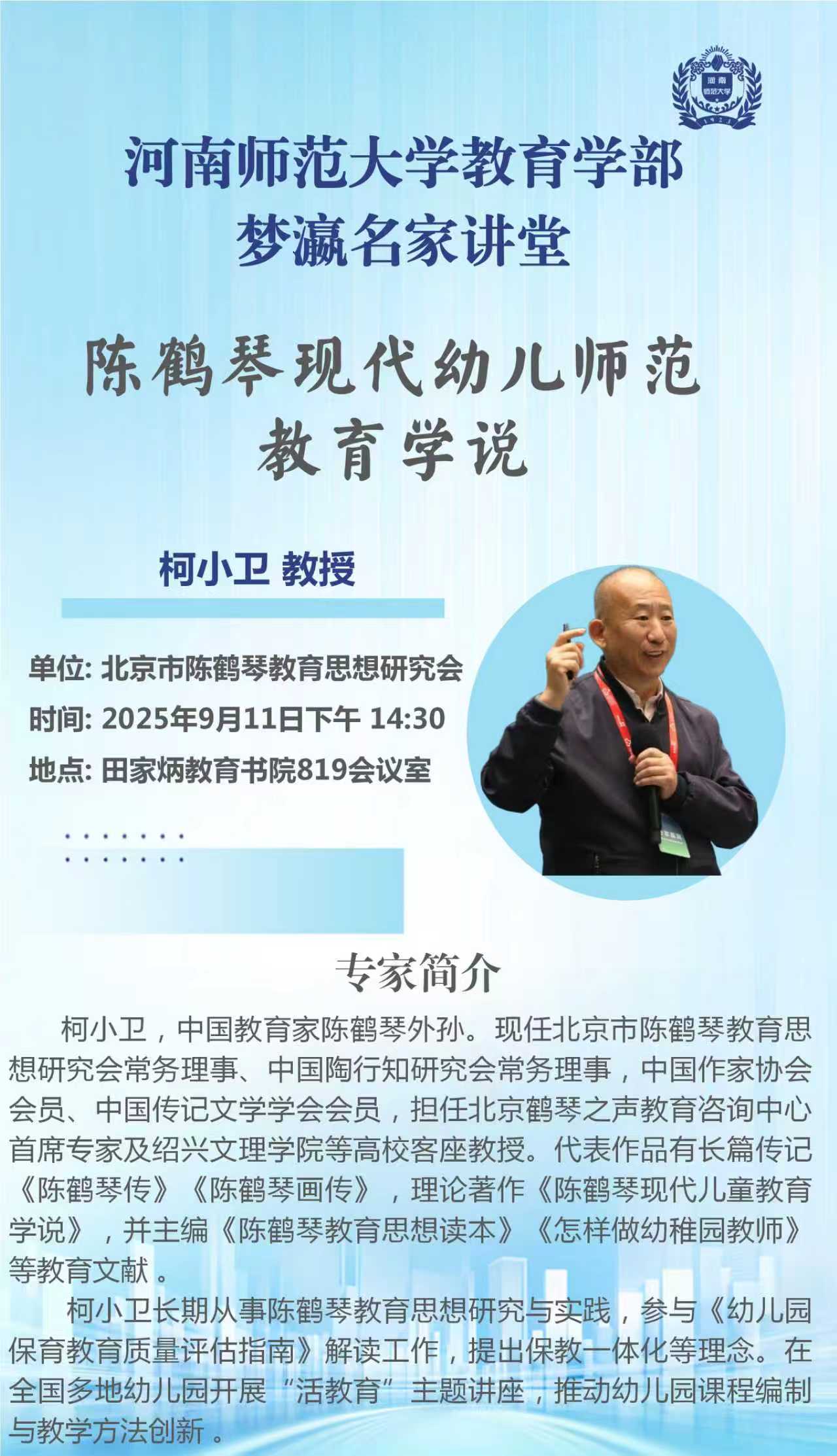 北京陈鹤琴教育思想研究会柯小卫教授应邀做客梦瀛名家讲堂