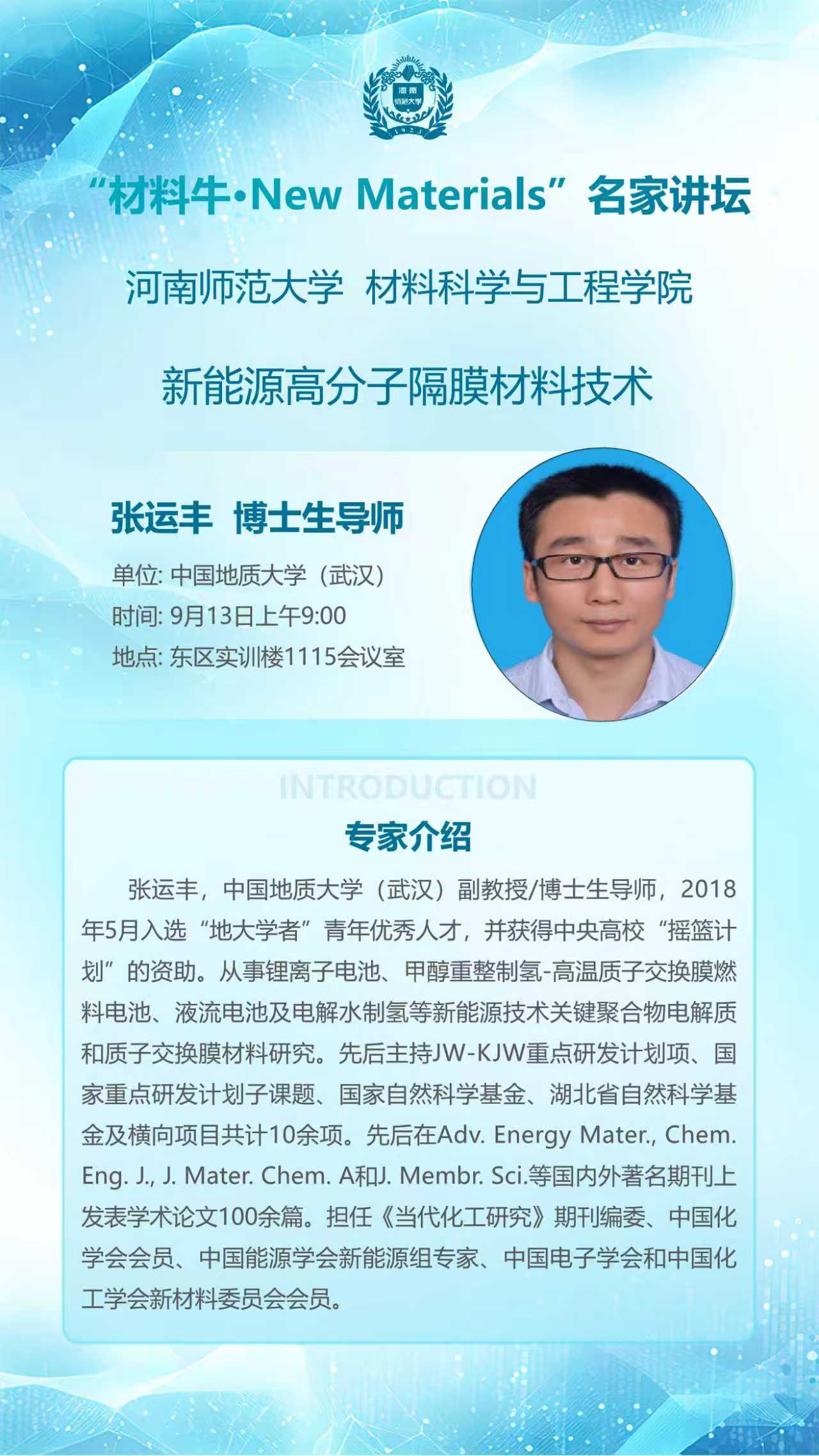 中国地质大学(武汉)张运丰教授将应邀做客“材料牛·NewMaterials”名家讲坛