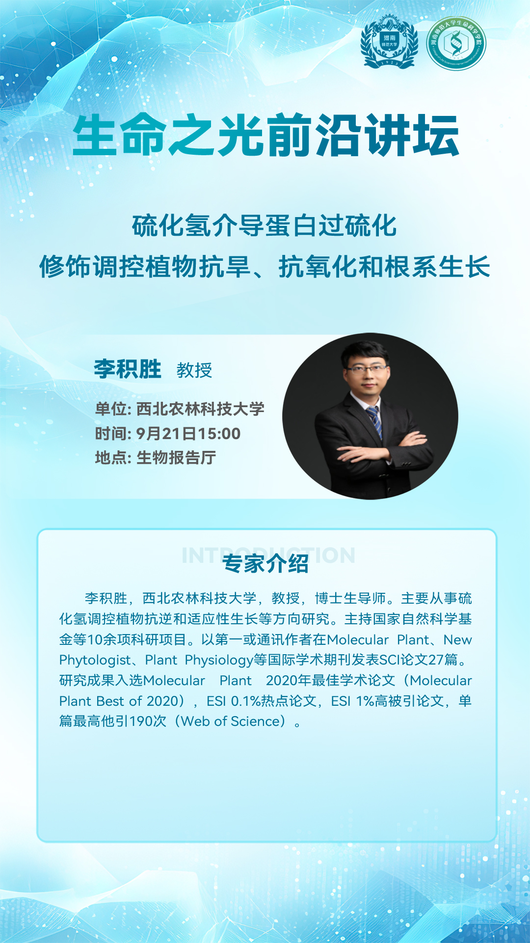 西北农林科技大学李积胜教授将应邀做客“生命之光”前沿讲坛