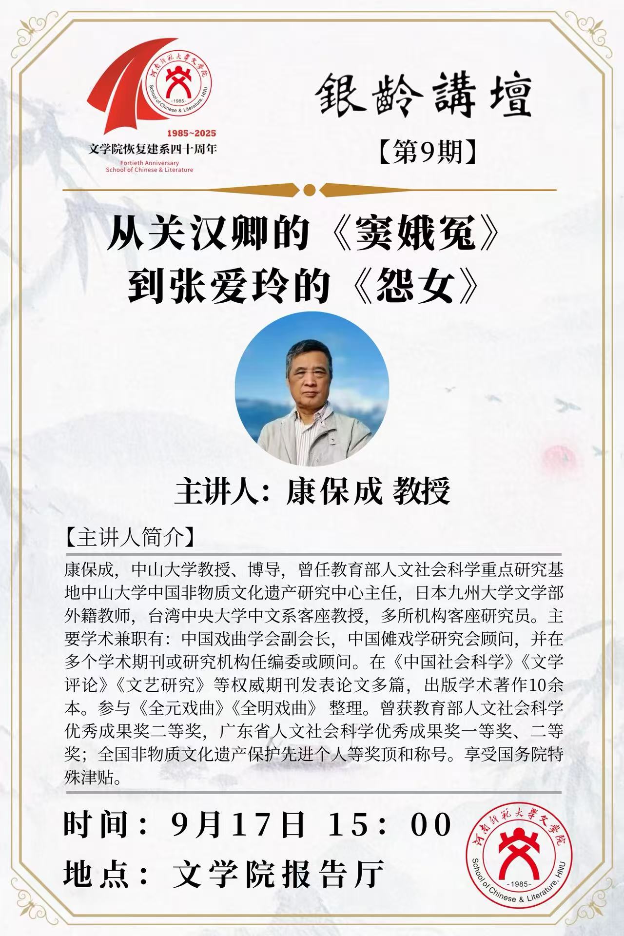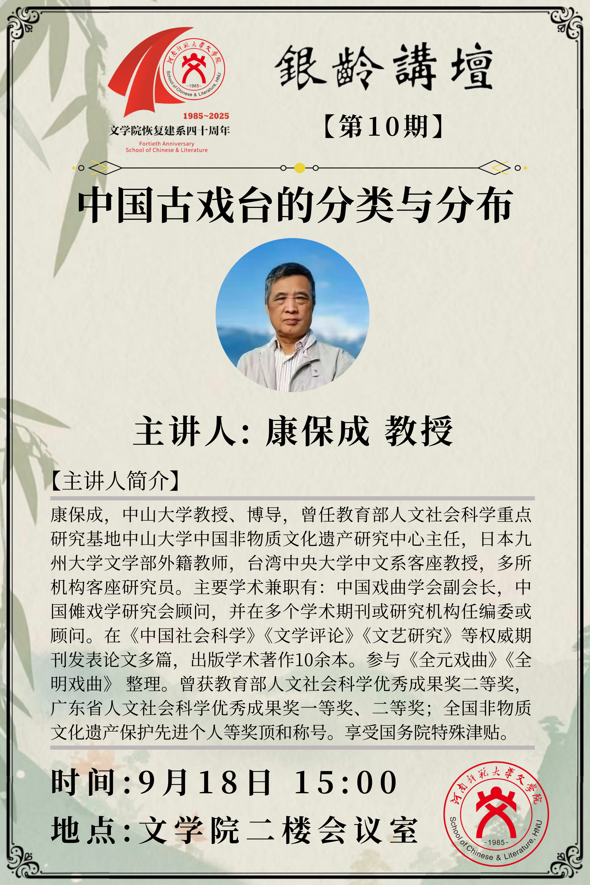 中山大学康保成教授将应邀做客文学院“银龄讲坛”