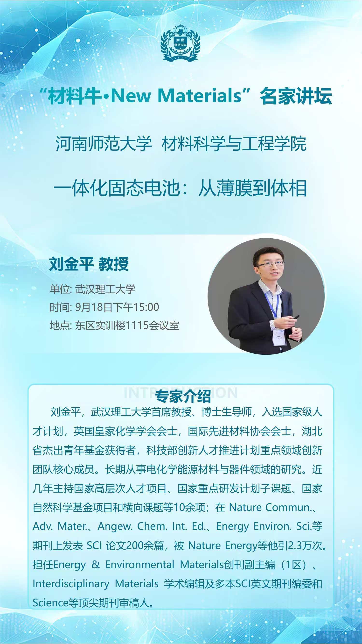 武汉理工大学刘金平教授将应邀做客“材料牛·New Materials”名家讲坛