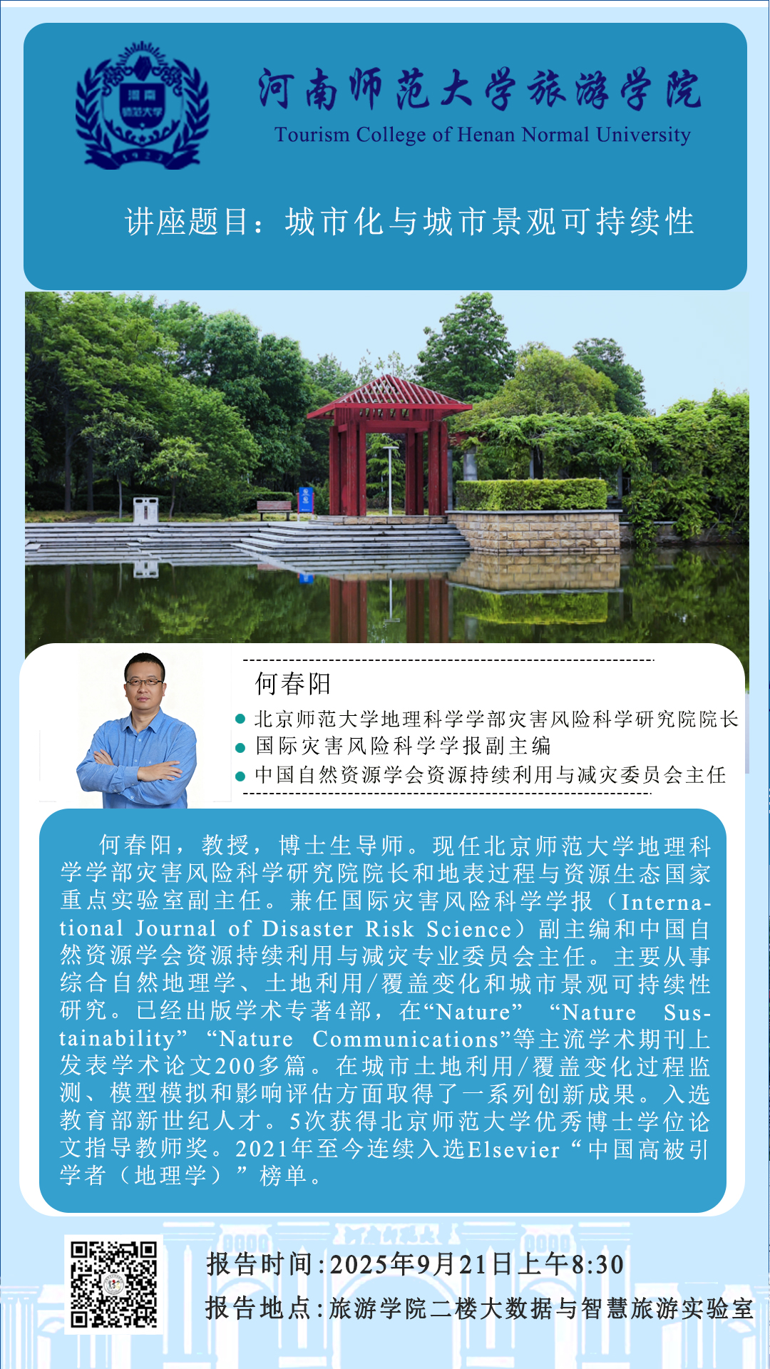 北京师范大学何春阳教授将应邀做客“高端专家行知讲堂”