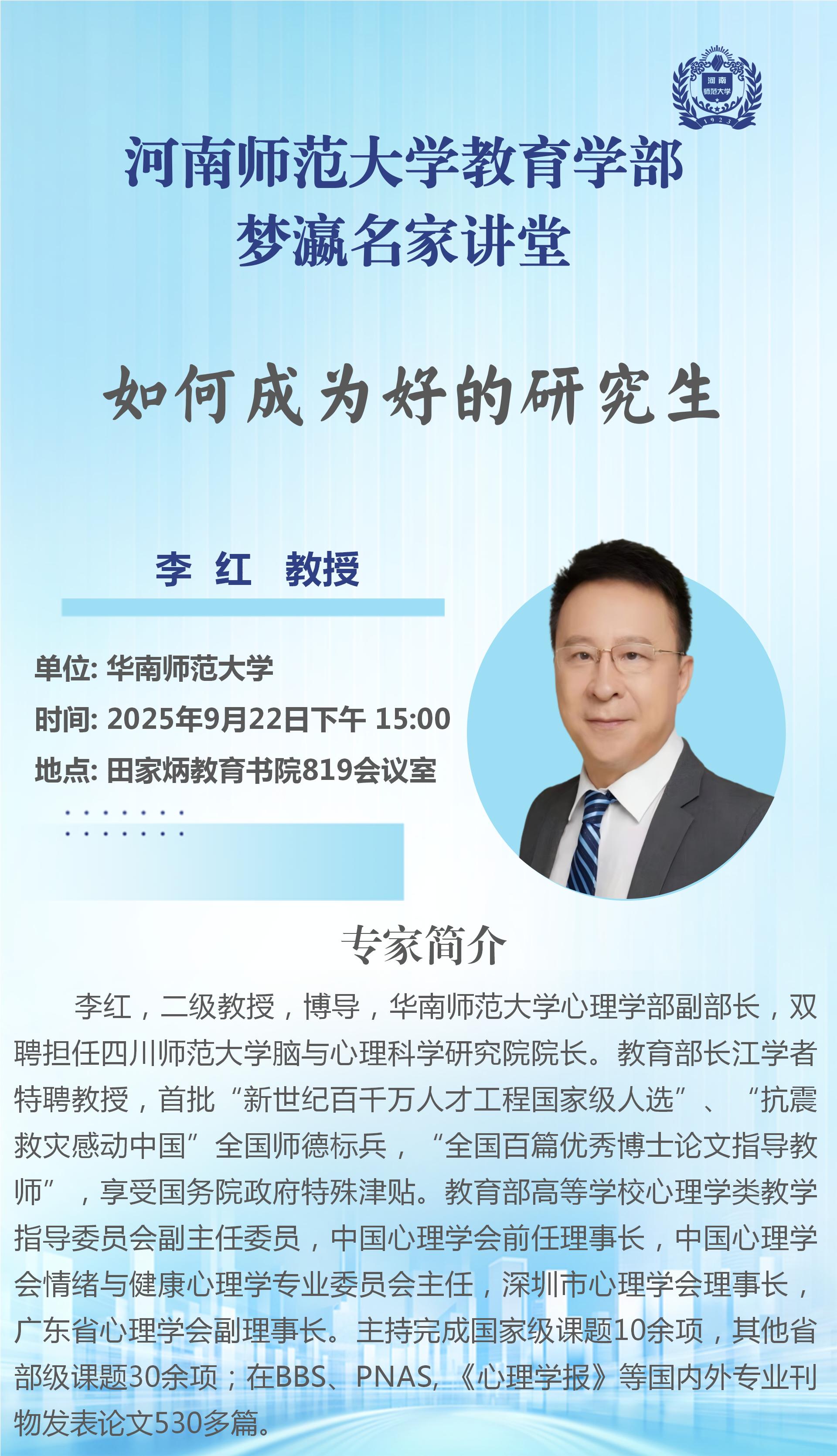 华南师范大学李红教授将应邀做客“梦瀛名家讲堂”