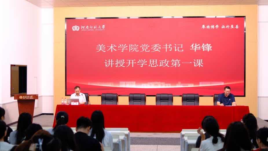 为深入贯彻落实立德树人根本任务,引导学生树立正确的世界观、人生观、价值观,9月12日下午,美术学院党委书记华锋在万人餐厅三楼树蕙堂为2025级新生讲授“开学思政第一课”。学院专兼职辅导员及2025级全体新生参加,第一课由学院党委副书记单一飞主持。