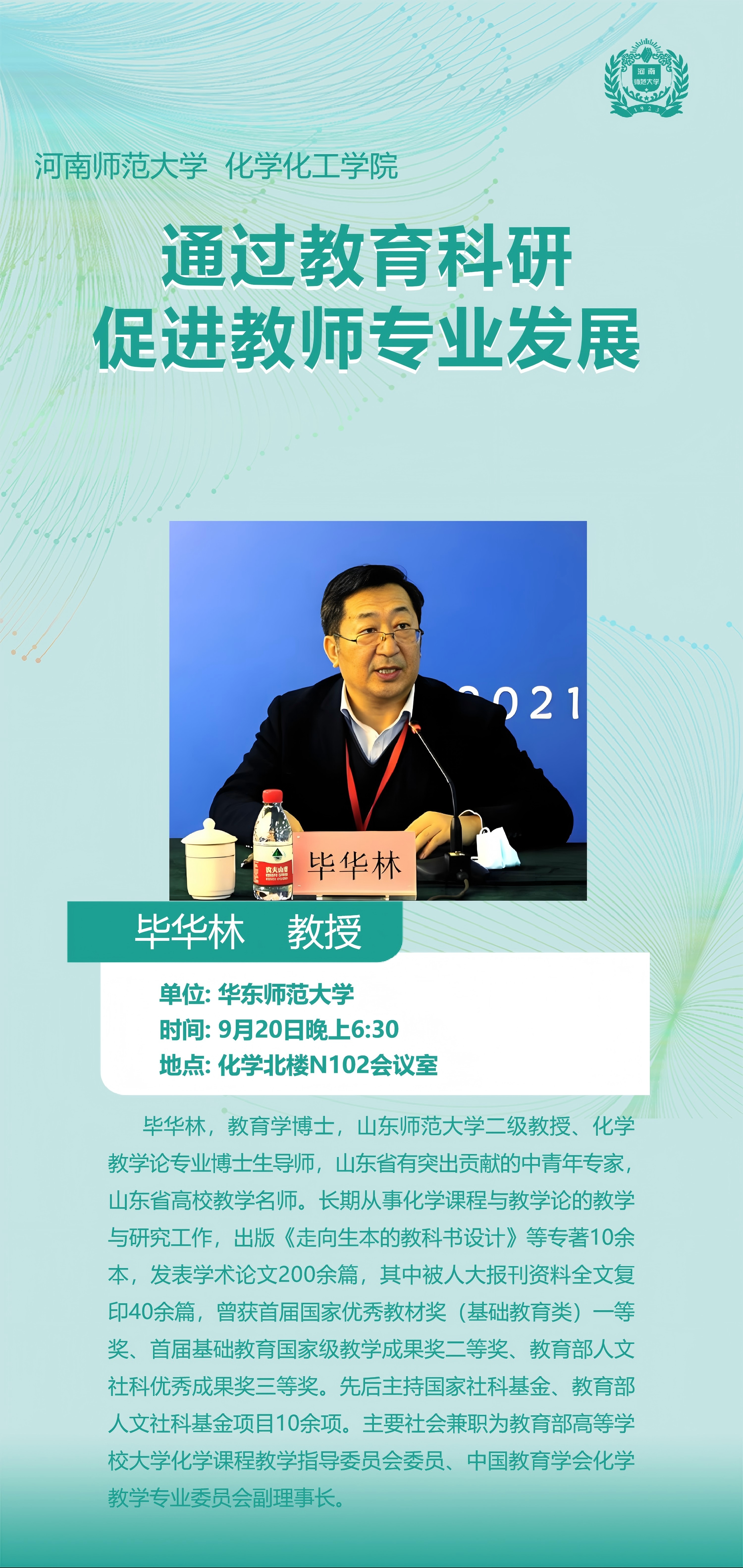 华东师范大学毕华林教授将应邀做客“俊甫讲堂”
