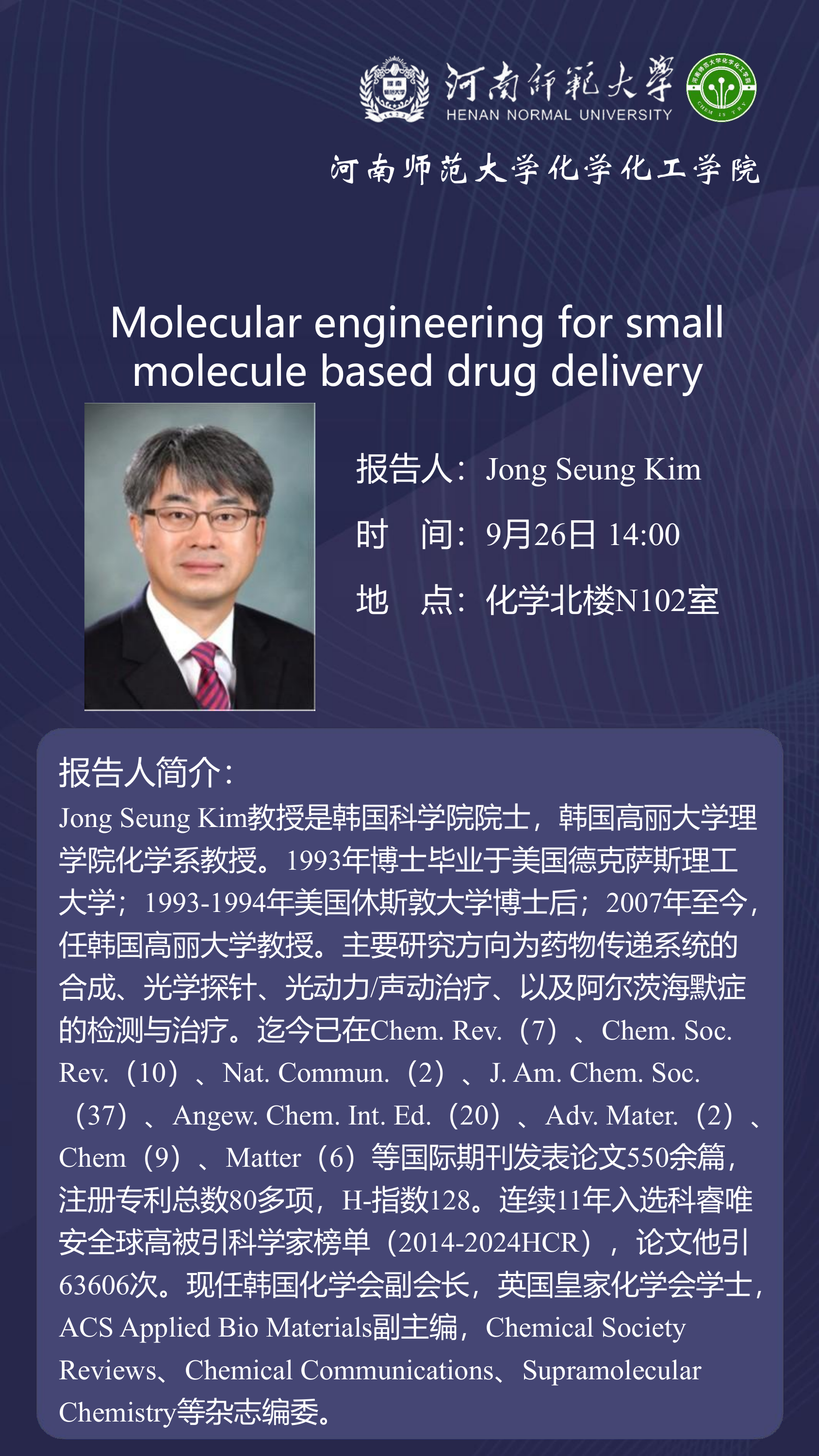 韩国高丽大学Jong Seung Kim院士将应邀做客“俊甫讲堂”