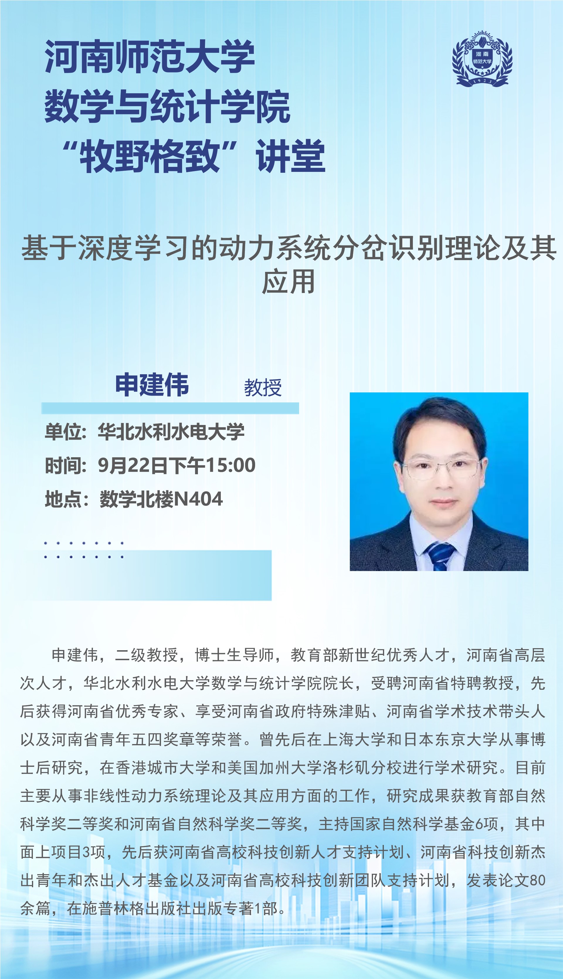 华北水利水电大学申建伟教授将应邀做客“牧野格致”讲堂