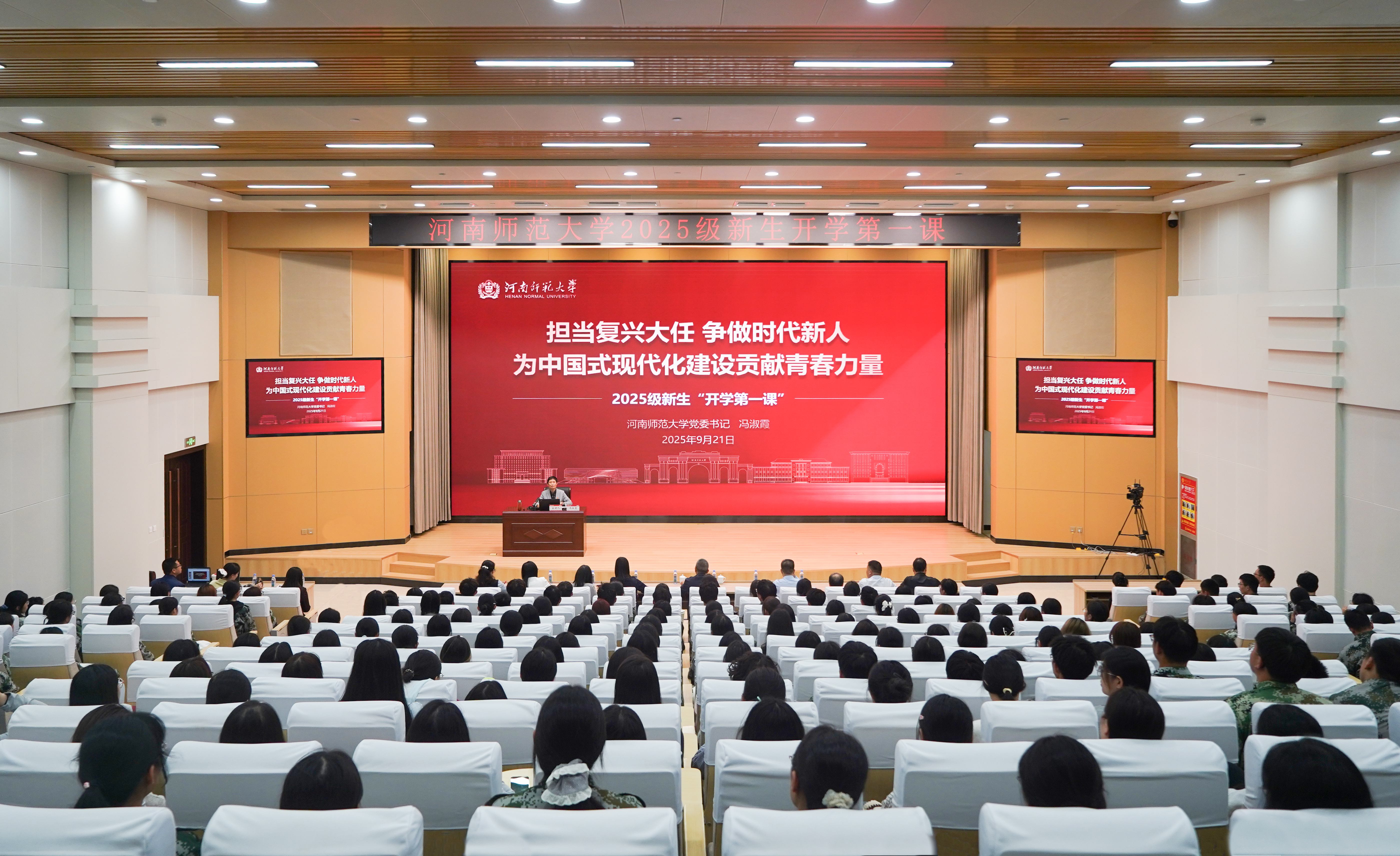 9月21日晚,校党委书记冯淑霞为我校2025级全体新生讲授“开学第一课”。本次报告以线上线下同步直播的形式开展,主会场设在求真楼五楼西报告厅,三个校区同步设64个分会场。学校相关职能部门负责人、各学院(部)党委副书记,全体专兼职新生辅导员,2025级全体本科生、硕士研究生、博士研究生共13800余人同上本次思政课。活动由校党委副书记秦法跃主持。