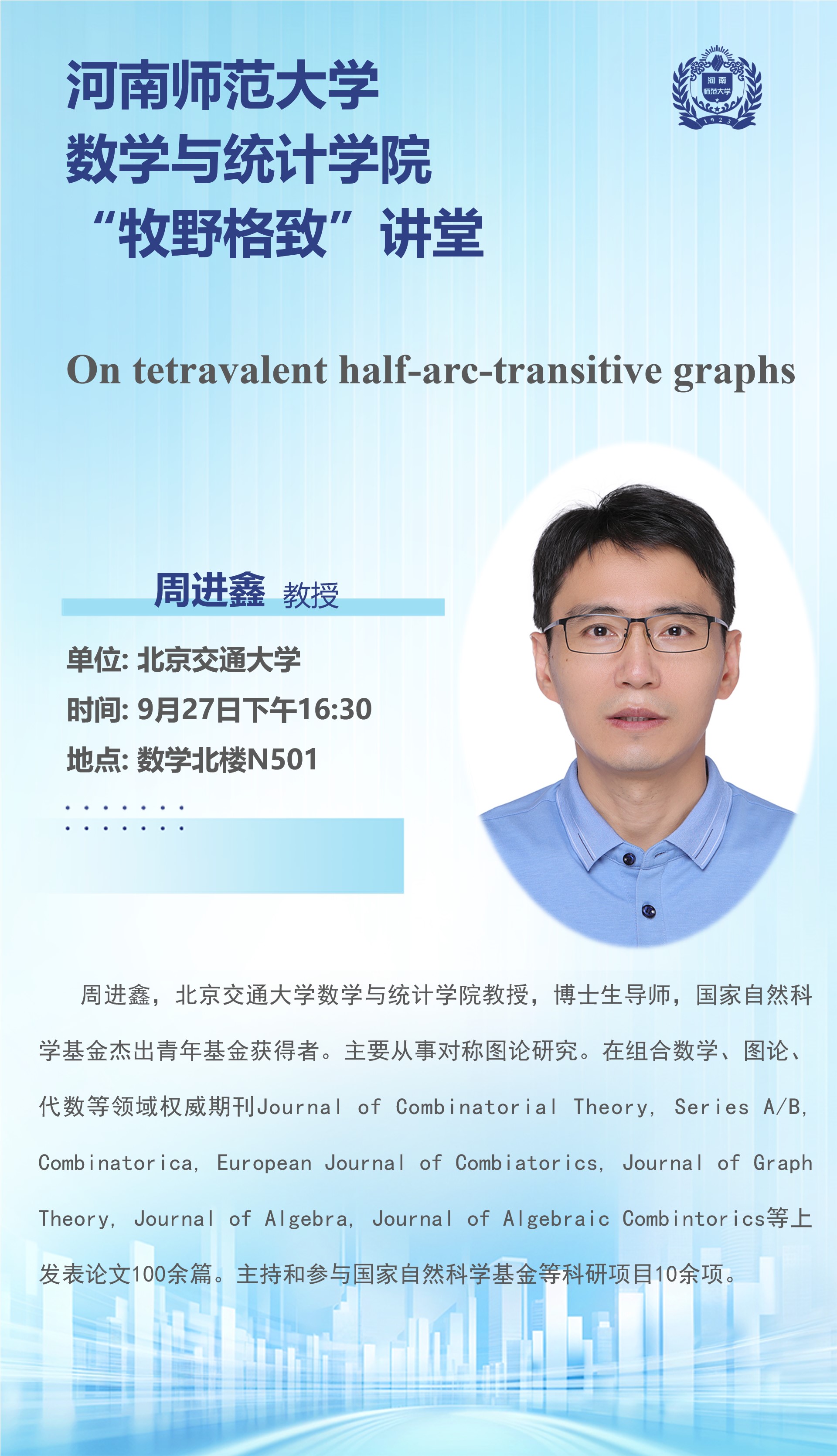 北京交通大学周进鑫教授将应邀做客“牧野格致”讲堂