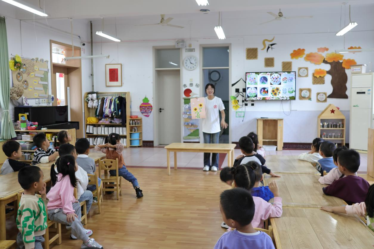 常利芹介绍了附属幼儿园的历史和建设发展,代表幼儿园全体师生对前来开展美育活动的志愿者表示衷心的感谢和欢迎。随后,在幼儿园教师的帮助下,大学生志愿者借助课件和成品展示,从粘土的色彩搭配、创作灵感,到花朵的花瓣层次、形态结构等细节,细致地讲解花朵植物的结构特点,包括粘土手工画的制作技巧。在手工创作环节,孩子们化身“小小艺术家”,在志愿者的辅助下,充分发挥想象力,通过揉、捏、搓、压,将五颜六色的粘土变成一朵朵形态各异的花朵,每一件作品都承载着他们对美的独特理解。