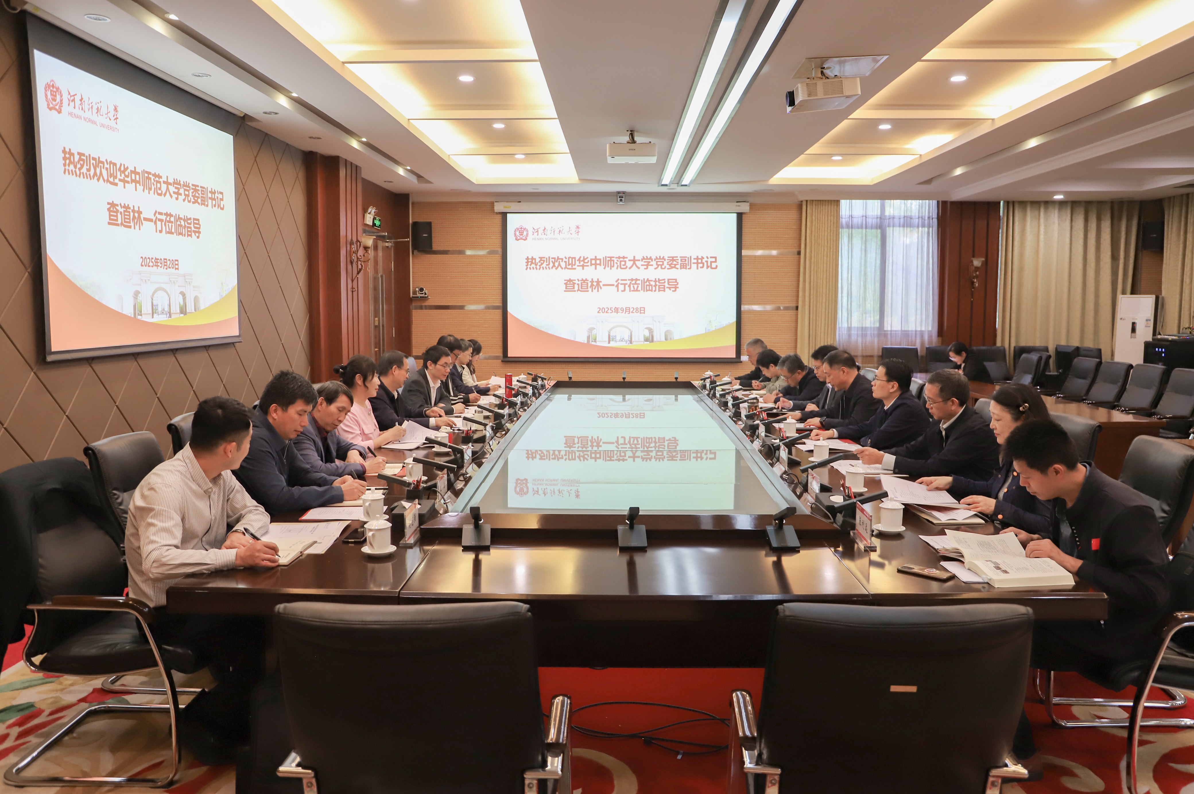 9月28日上午,华中师范大学党委副书记查道林一行9人莅临我校考察交流,座谈会在勤政楼第三会议室召开。校党委副书记王玉良出席会议,座谈会由党委常委、党委统战部部长李志前主持。