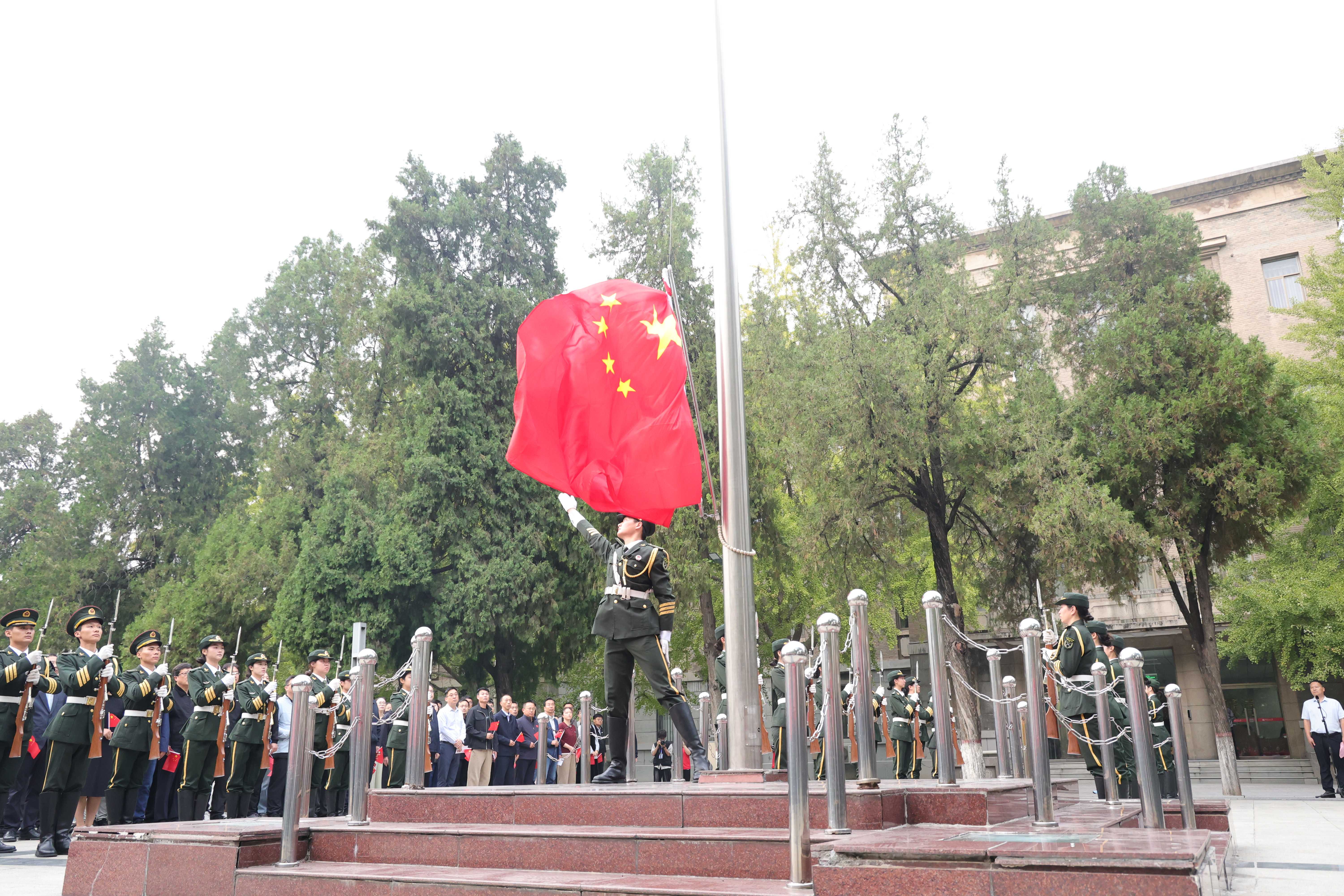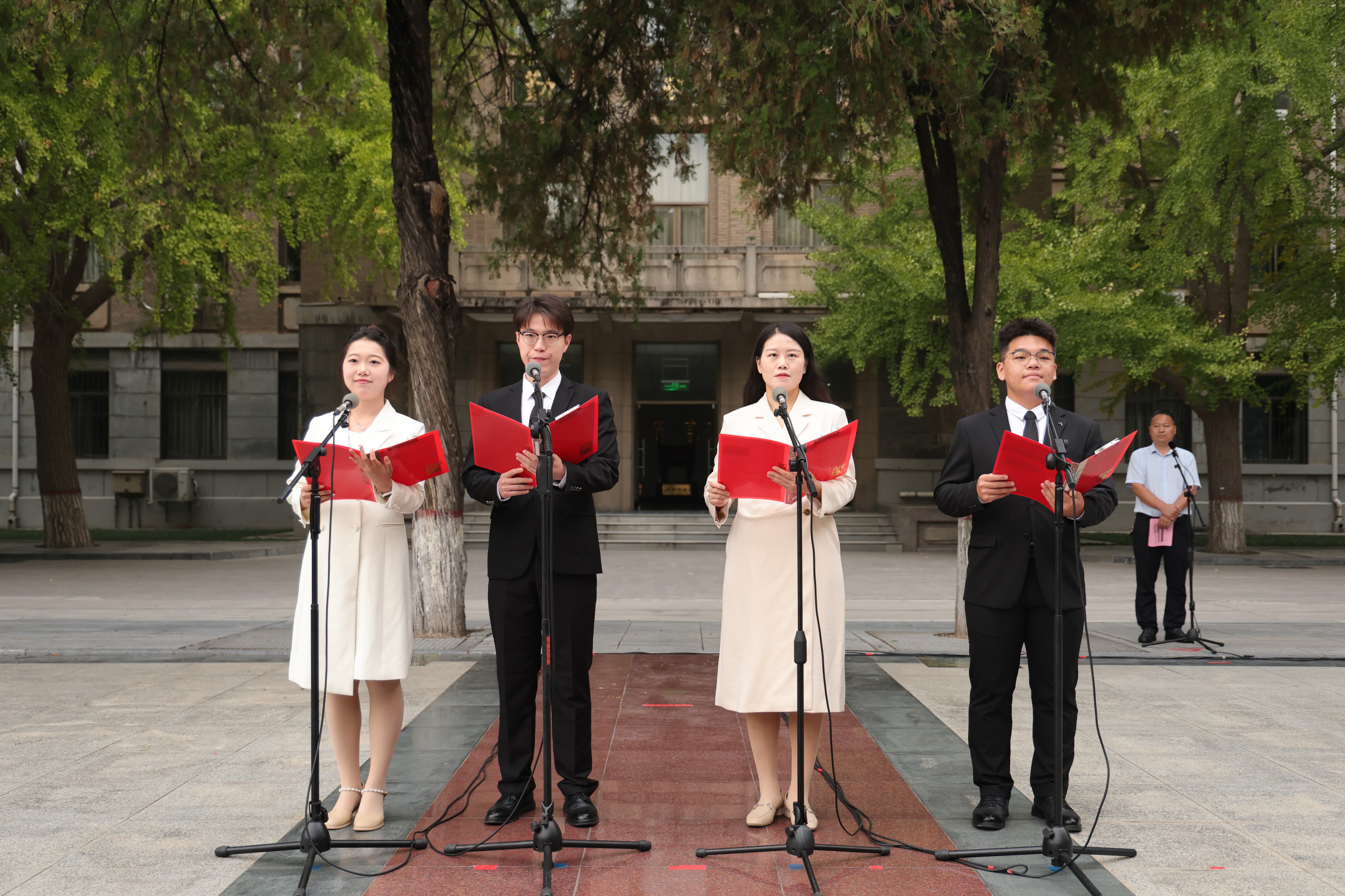 葛照金在主持仪式时表示,在庆祝新中国成立76周年的庄严时刻,升国旗仪式是对祖国母亲的深情告白,全体青年学子要立报国之志,把准人生航向,在“厚德博学,止于至善”的校训熏陶中筑牢信仰之基,让青春的航向始终与祖国发展同向同行;要怀爱国之情,勇担时代重任,心怀“国之大者”,在民族复兴的征程中书写青春华章;要练强国之能,展现青春作为。以“请党放心,强国有我”的铮铮誓言为动力,在强国建设、民族复兴伟业中贡献青春力量。