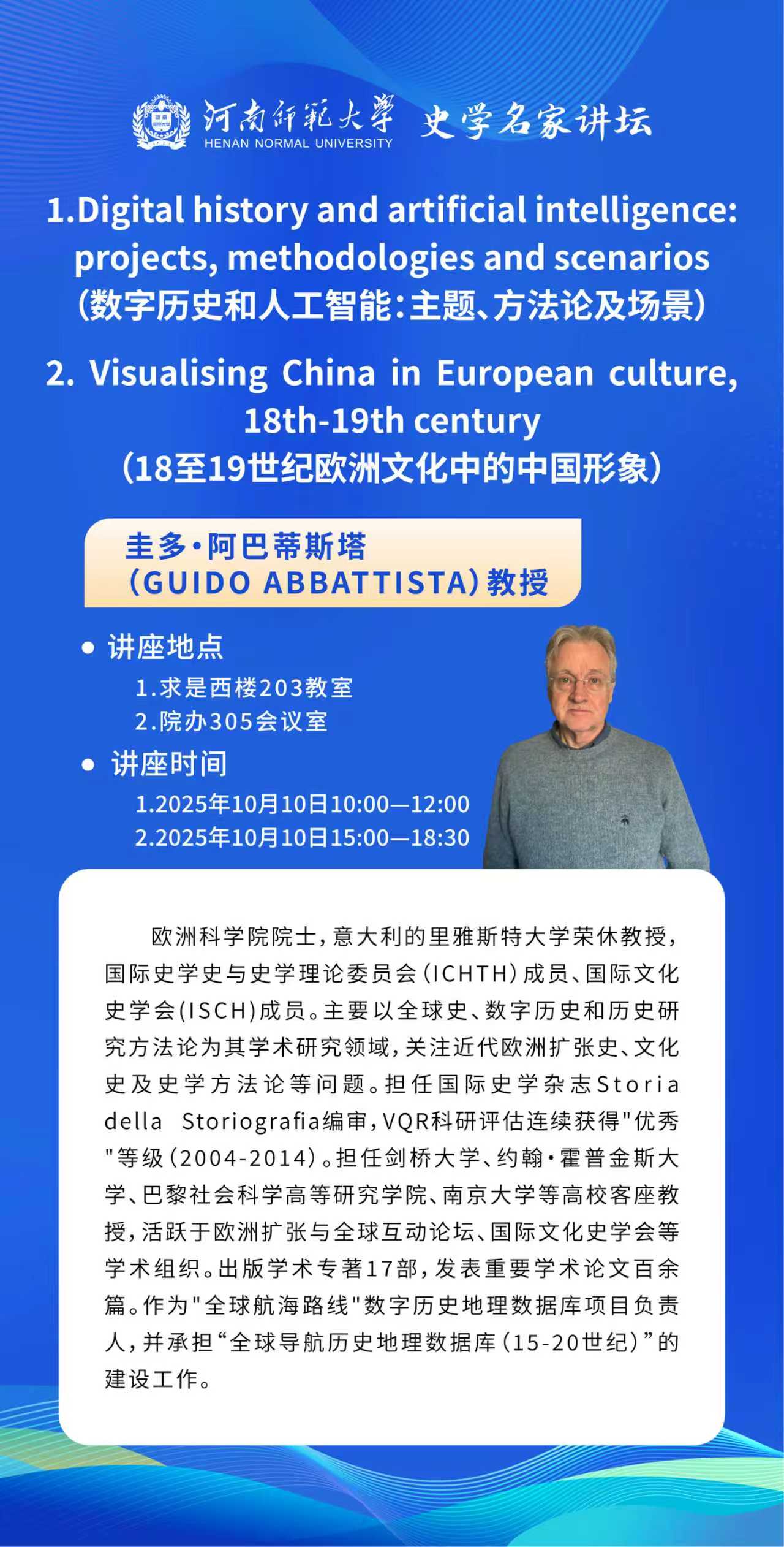 意大利的里雅斯特大学GUIDO ABBATTISTA教授将应邀做客“史学名家讲坛”