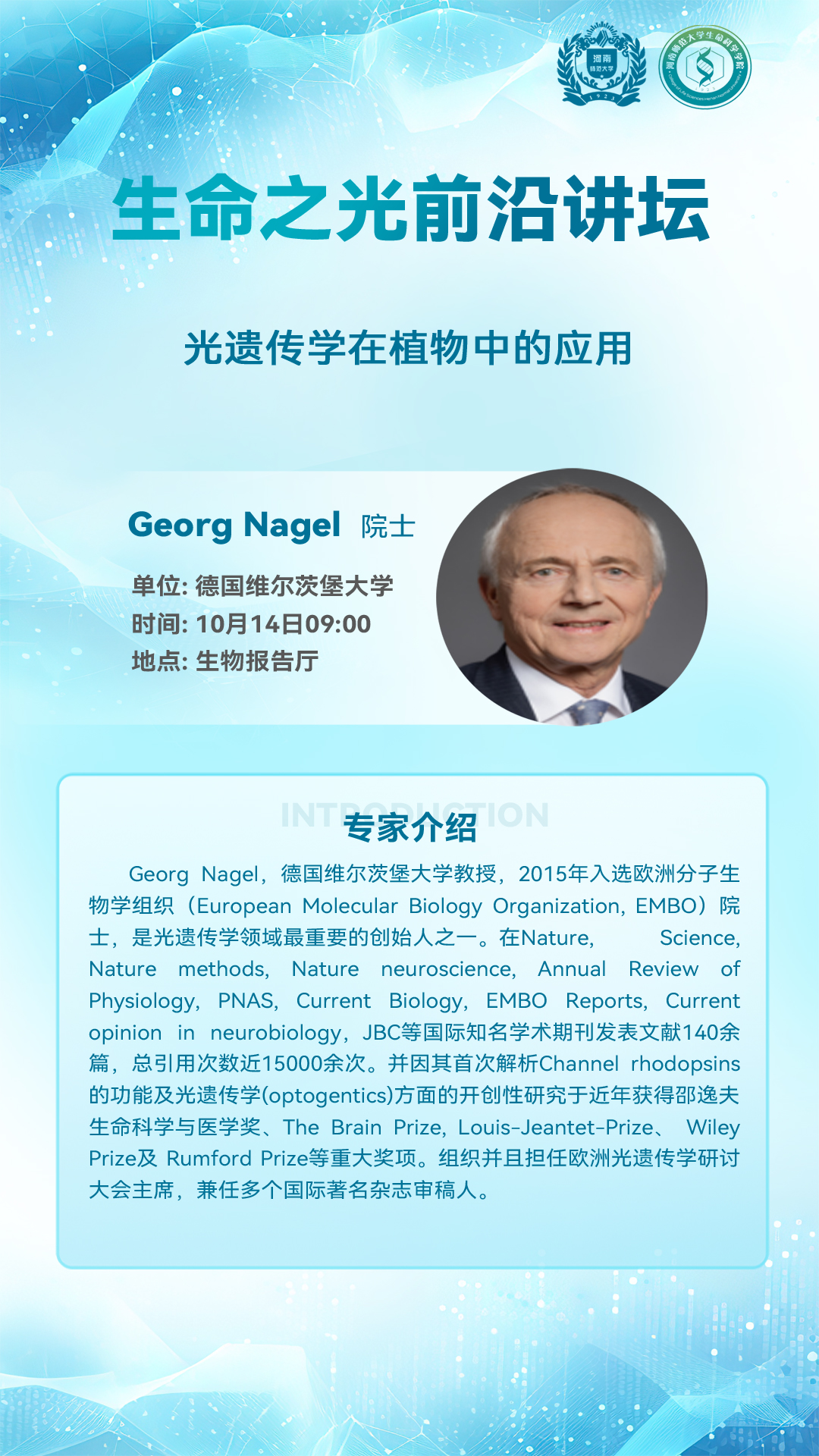 德国维尔茨堡大学Georg Nagel 院士将应邀做客“生命之光”前沿讲坛