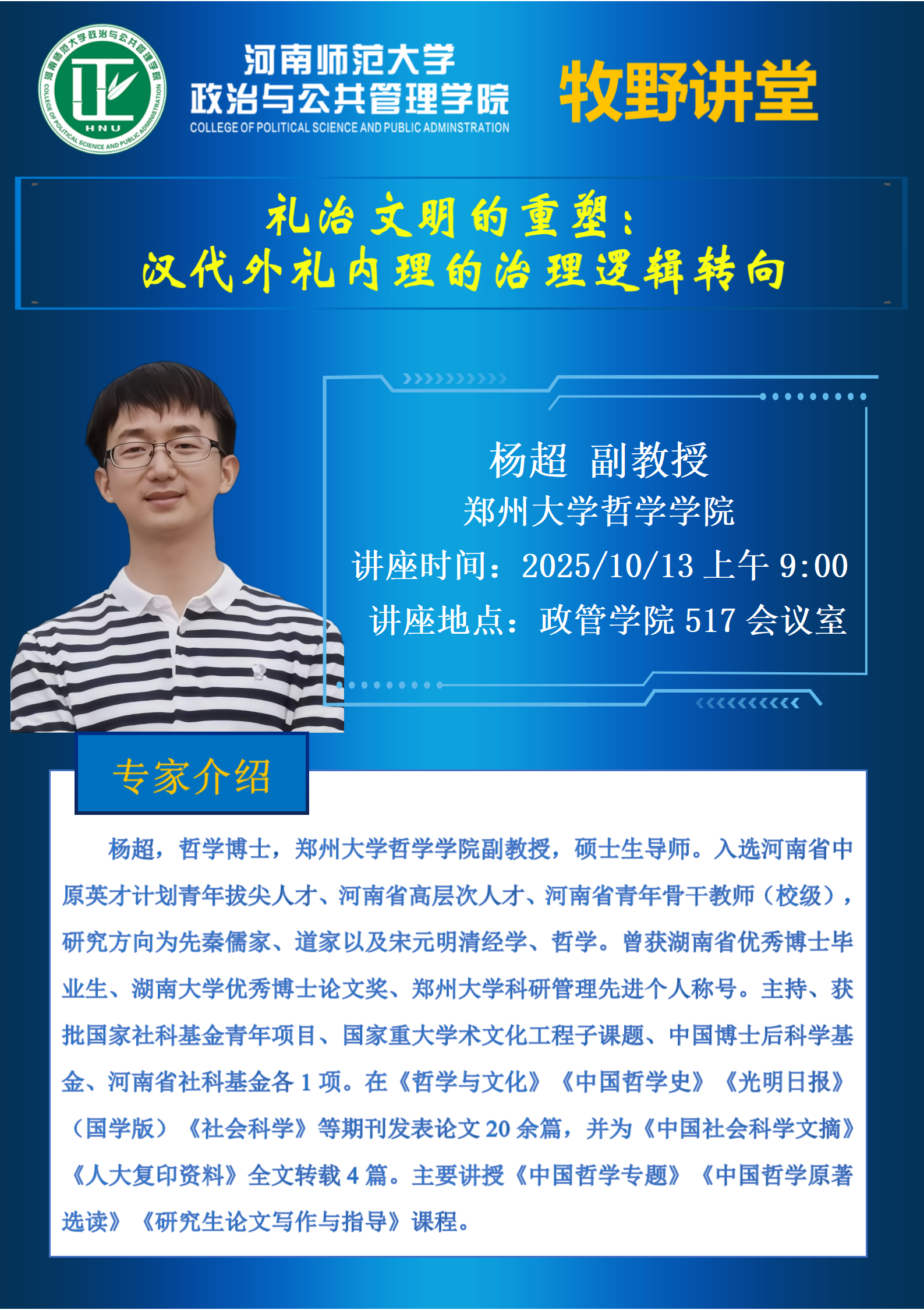 郑州大学杨超副教授将应邀做客“牧野讲堂”