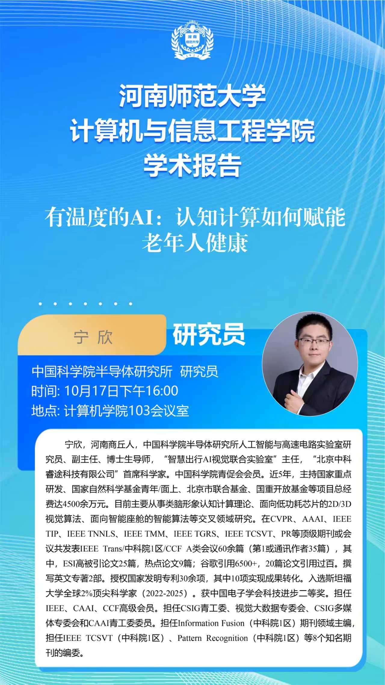 中国科学院半导体研究所宁欣研究员将应邀做客“智能科学”讲坛
