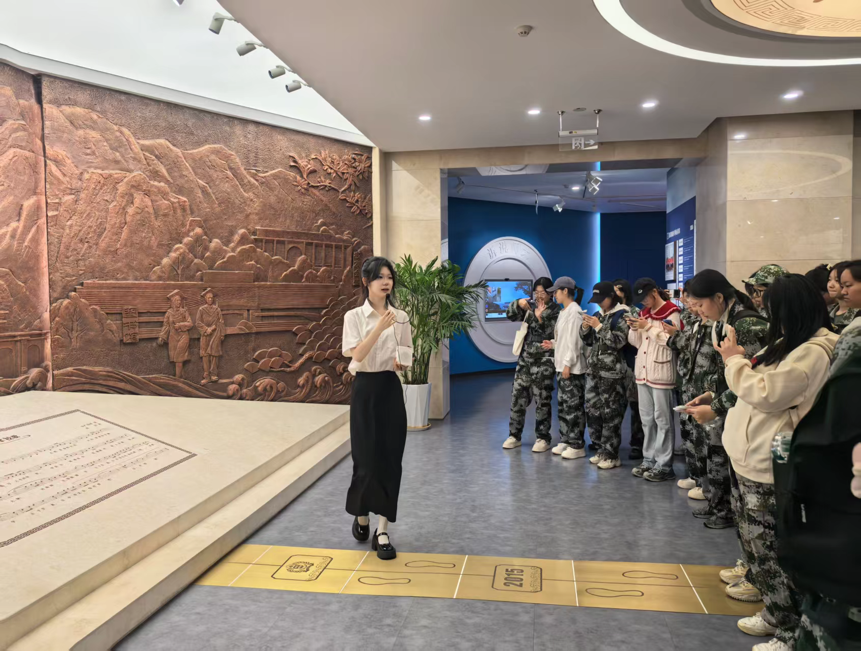 2023年正值学校办学百年,为满足校庆期间校史展示、文化传播及来访接待需求,校史馆讲解团应运而生。筹建初期,面对时间紧、人员少、经验不足等种种困难,讲解团成员迎难而上,累计完成26场重要接待,不仅搭建起团队的初步框架,更锚定“传承历史,弘扬精神”的核心基调。团队组建后,首要的任务就是专业化讲解员队伍的打造。他们围绕“声”与“礼”构建严苛的培训体系,每天“早八”集中开展语音训练,逐帧打磨礼仪细节,并根据不同展区调整适配语速,以日复一日的高强度训练,为每一次从容应对筑牢根基。