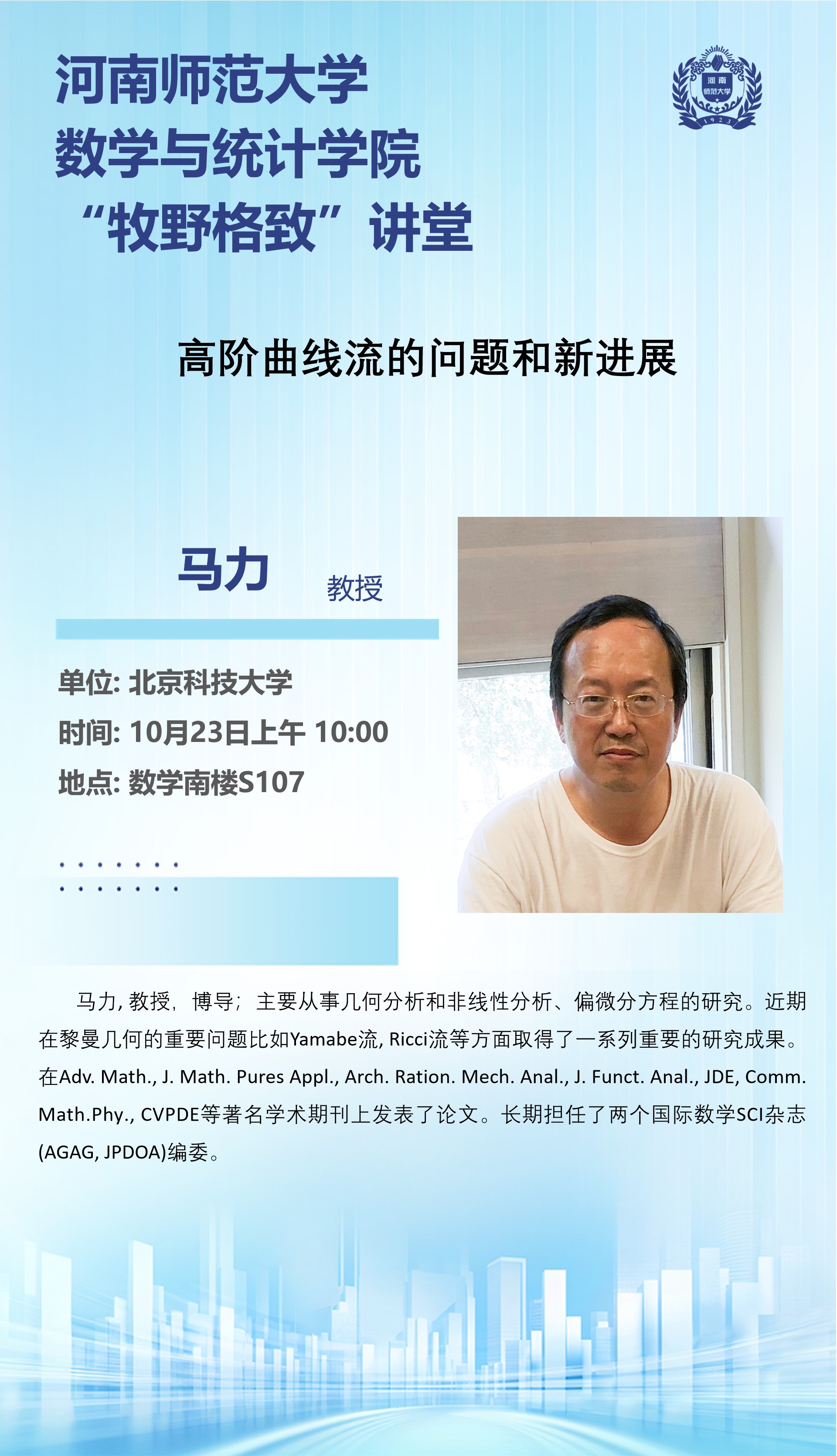 北京科技大学马力教授将应邀做客“牧野格致”讲堂