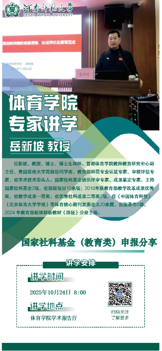 首都体育学院岳新坡教授将应邀做客“体育博雅论坛”