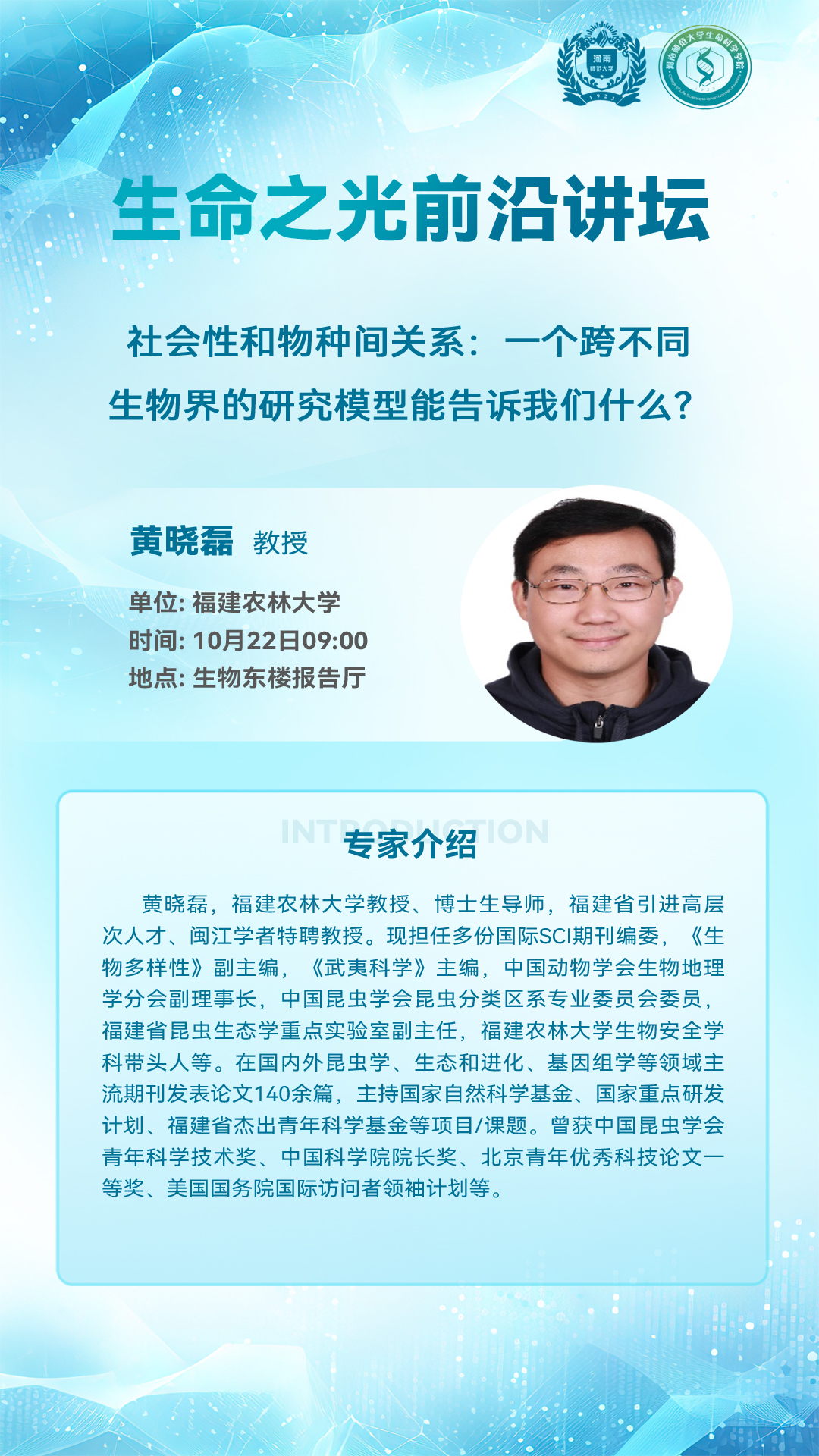 福建农林大学黄晓磊教授将应邀做客“生命之光”前沿讲坛