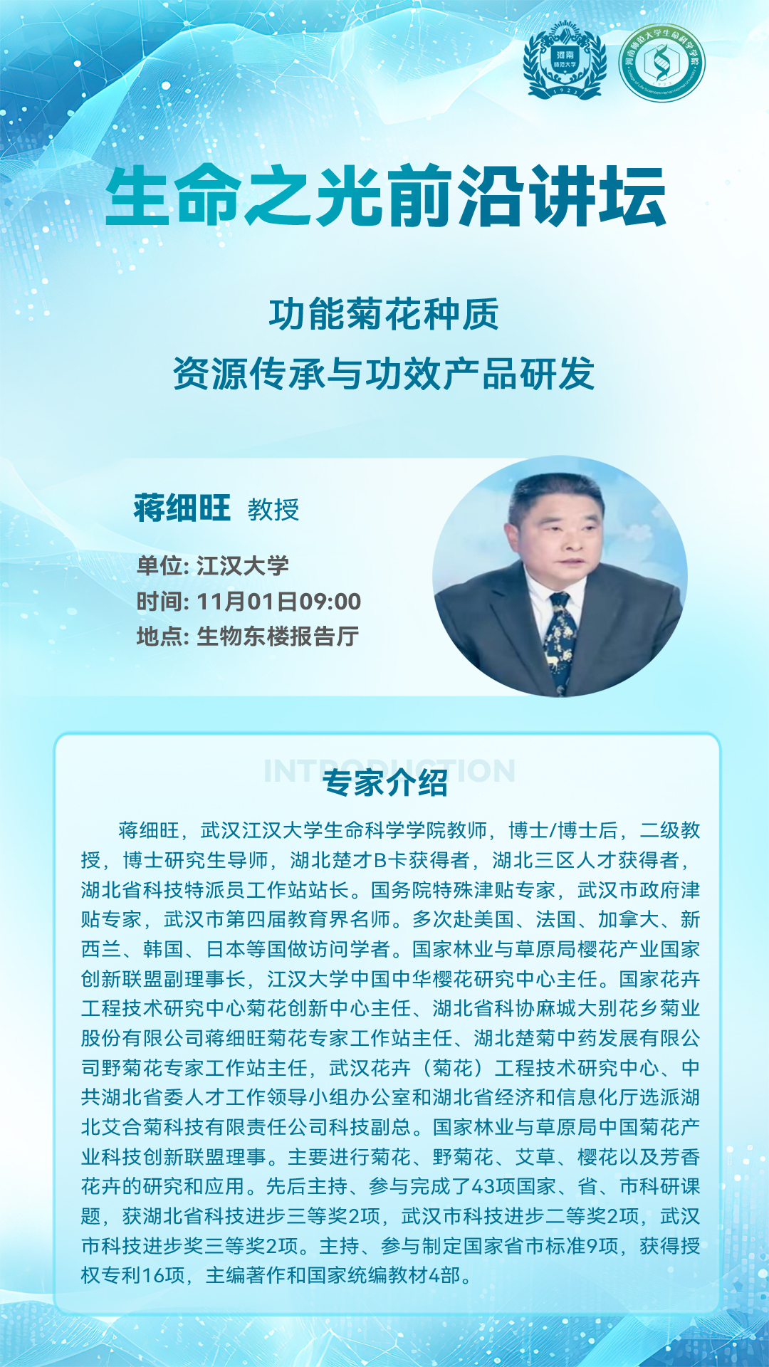 江汉大学蒋细旺教授将应邀做客“生命之光”前沿讲坛