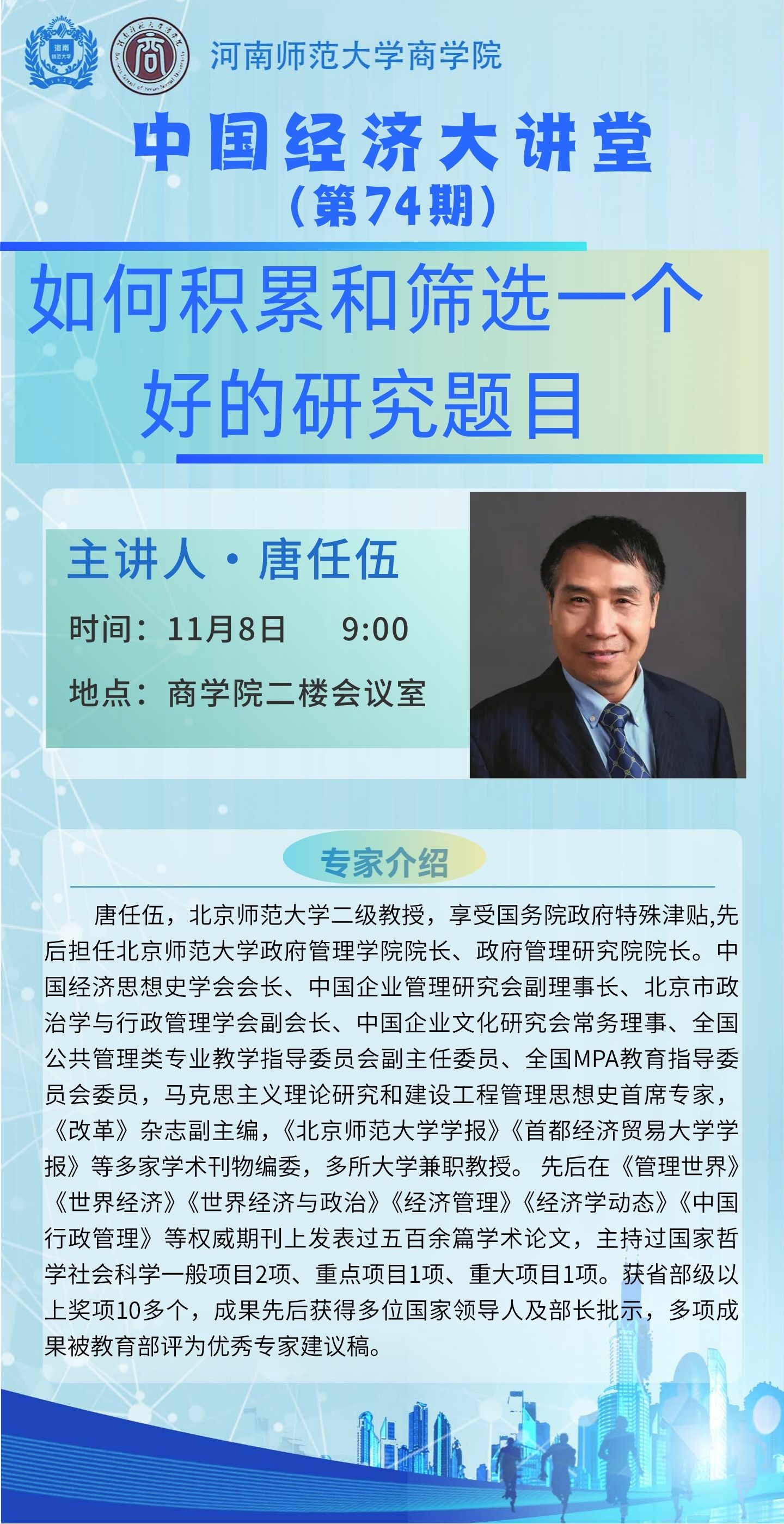北京师范大学唐任伍教授将应邀做客“中国经济大讲堂”
