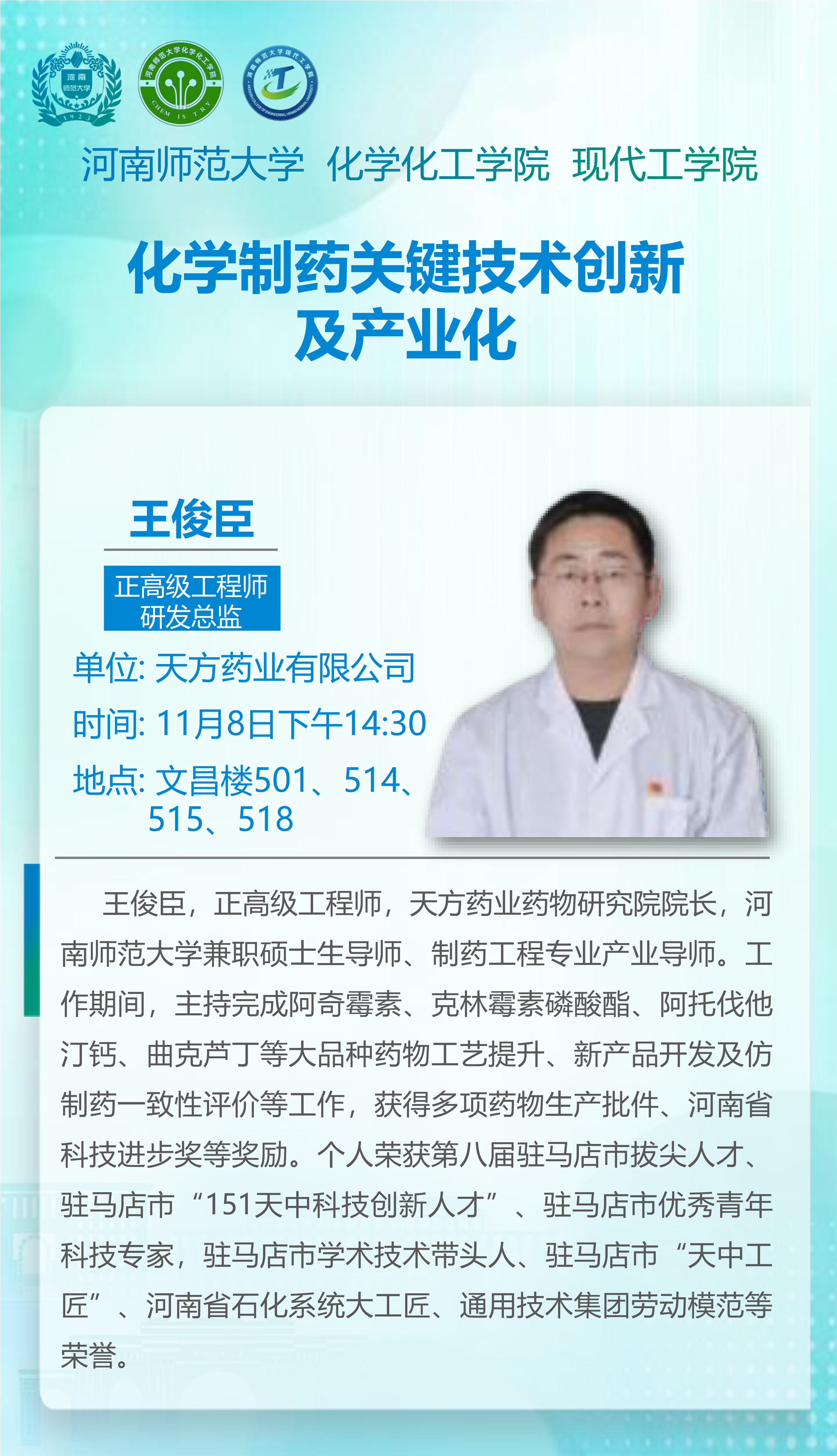 天方药业有限公司王俊臣正高级工程师将应邀做客“俊甫讲堂”