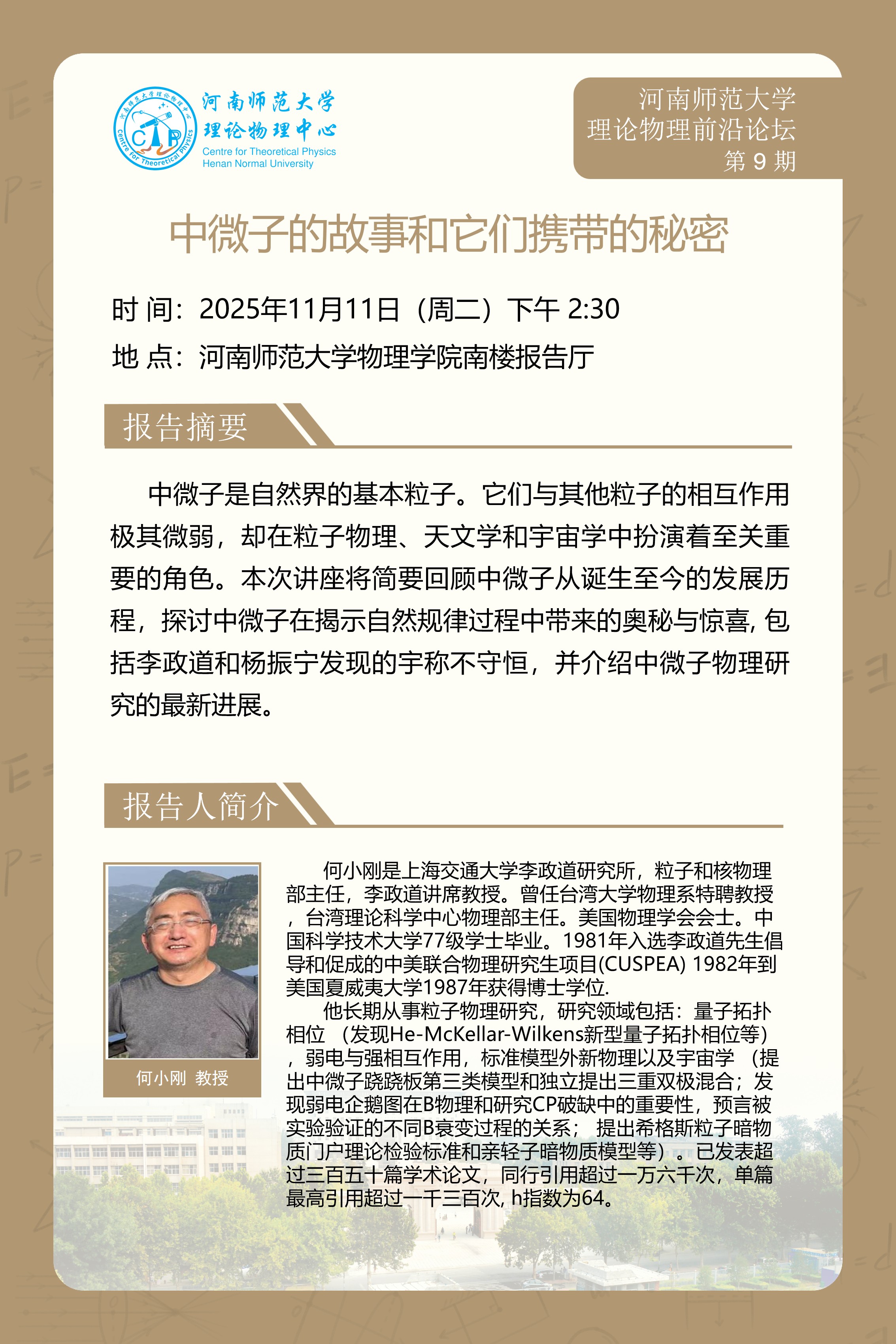 上海交通大学何小刚教授将应邀做客“理论物理前沿论坛”