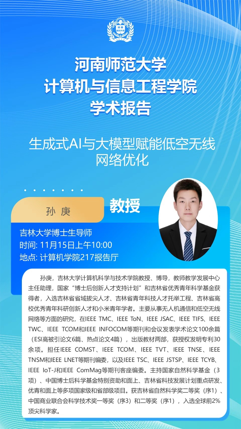 吉林大学孙庚教授将应邀做客“智能科学”讲坛