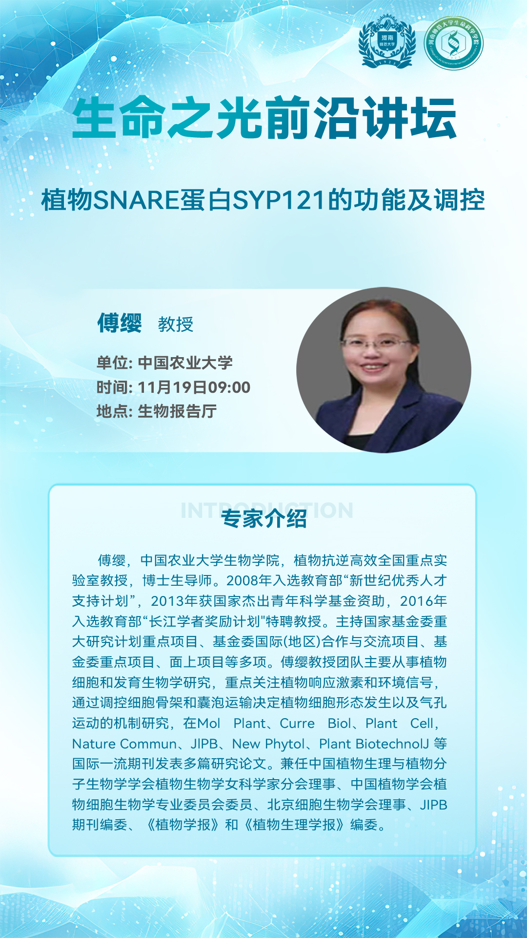 中国农业大学傅缨教授将应邀做客“生命之光”前沿讲坛