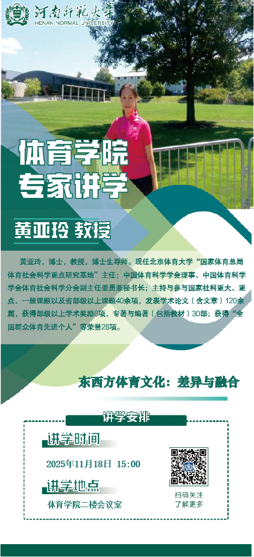 北京体育大学黄亚玲教授将应邀做客“体育博雅论坛”
