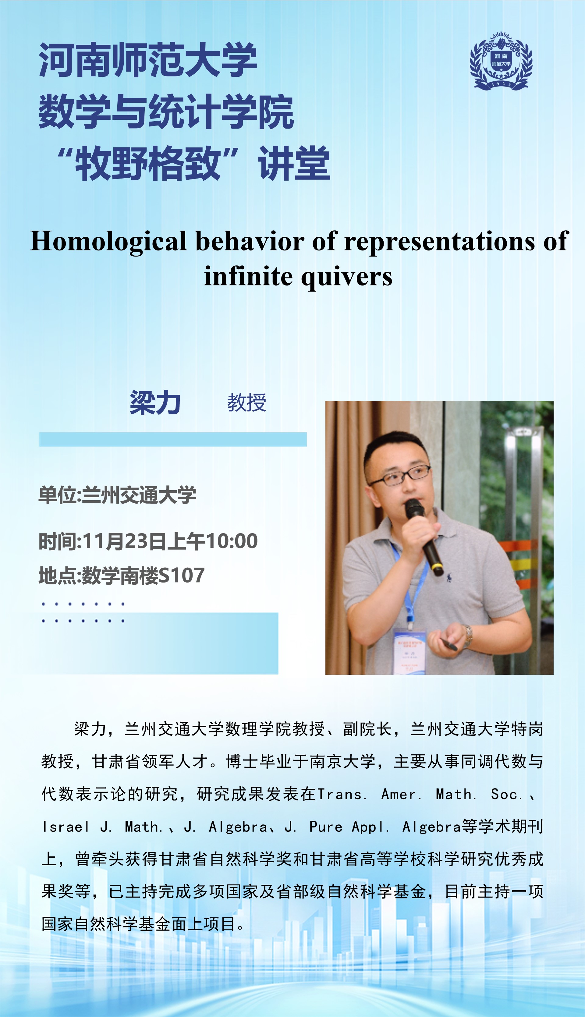 兰州交通大学梁力教授将应邀做客“牧野格致”讲堂