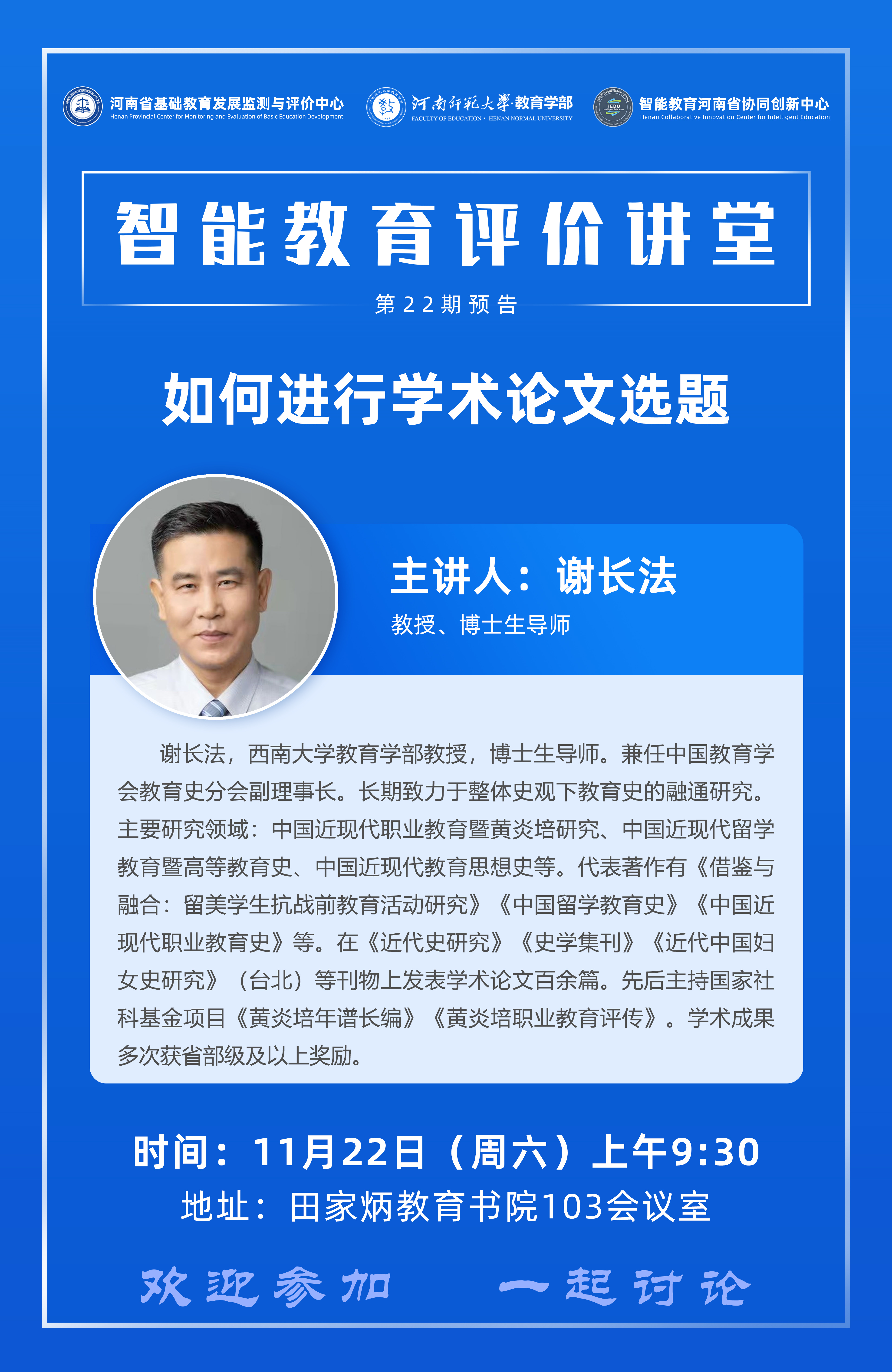 西南大学谢长法教授将应邀做客“智能教育评价”讲堂