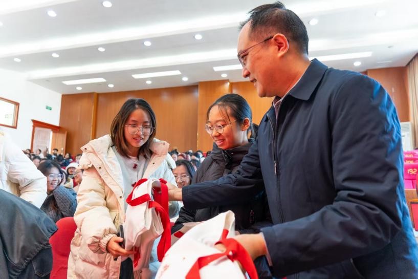 活动现场,学部领导老师为考研学子发放了精心准备的慰问礼品,传递关怀与祝福。各专业班主任也分别寄语,叮嘱同学们保重身体,以最佳状态迎接考试。