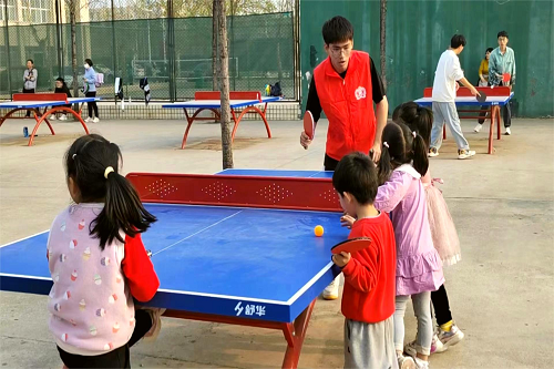 【编者按】总有一群人,在凌晨默默起床,在黑夜深深守护;总有一些事,温暖你我的心,给我们接续奋斗的力量和勇气。每个人都是一道光,哪怕微微的,聚在一起就能点亮整个星空。每个人都了不起,只有你我共同努力,才能迎来师大更加美好的明天。为进一步讲好师大故事,凝聚学校正能量,校园网特推出“师大微光”栏目,记录凡人微光,传递温暖力量,点赞平凡中的不平凡。 “快乐运动,健康生活。”这不仅是一句口号,更是我校“金色梦想·情暖童心”志愿服务团队一直秉持的团队理念。这支由我校体育学院研究生党员、本科生党员、优秀志愿者组成的教练队伍成立于2020年9月。该团队通过各类运动项目和游戏活动进入师大附小、幼儿园课堂、社区、村镇学校等,开展有针对性的体育公益专项训练活动。团队成员积极响应“体育强国”目标,发挥专业特长提升青少年身体素质,深刻践行了奉献、友爱、互助、进步的志愿服务精神,将温暖洒遍牧野大地。情暖童心志愿育苗“用手垂直向上抛球,待乒乓球下降后击球使球先落在我方球台,再挥拍使球落到对方球台即为发球成功。”公益课堂上,教练一边介绍乒乓球的发球方法,一边向同学们进行示范。这是我校“金色梦想·情暖童心”志愿服务团队
