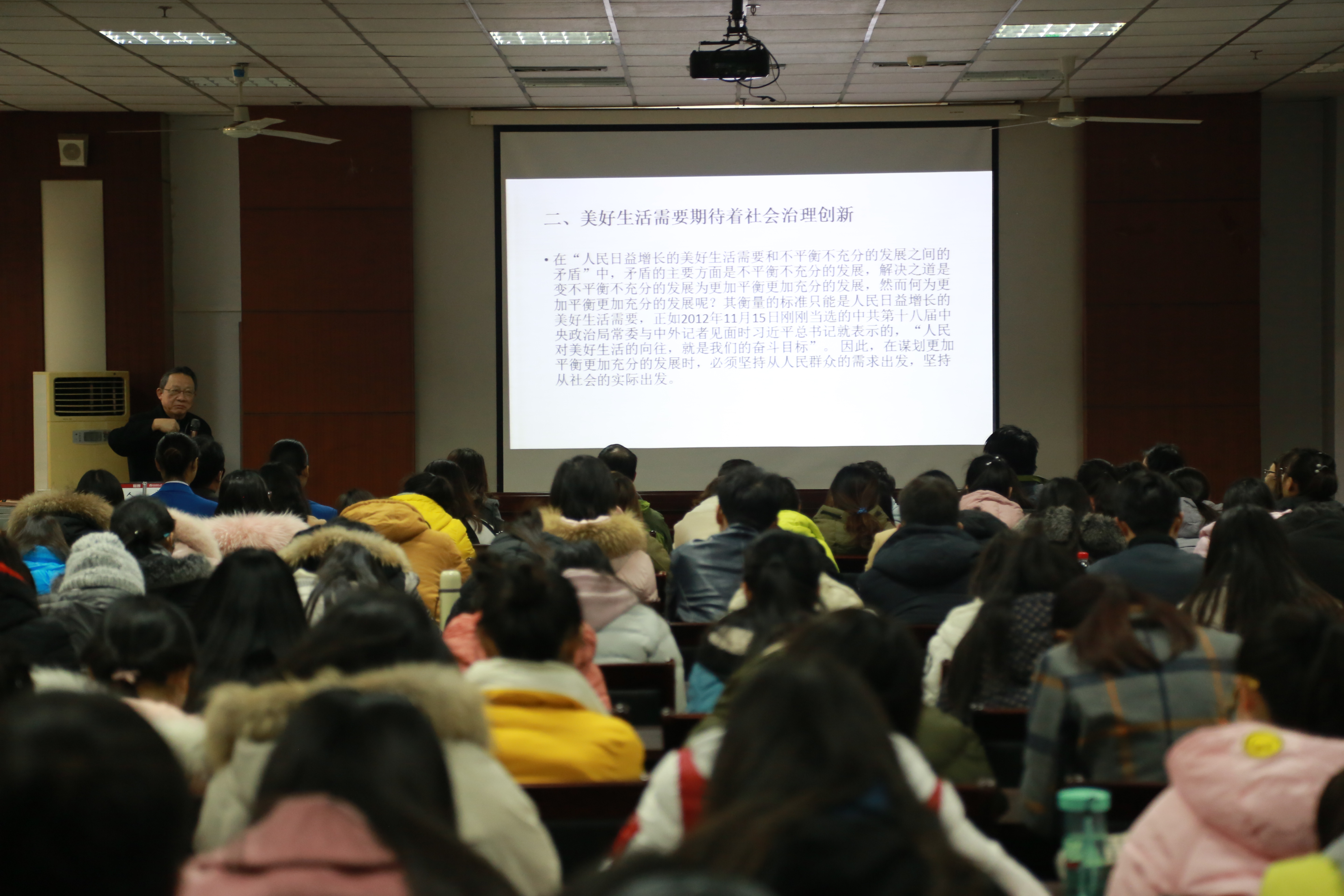 12月12日上午,国家社会科学基金学科评审专家、中国社会保障学会副会长、南京大学博士生导师童星教授应我校社会事业学院邀请,在我校西区图书馆作了题为“主要矛盾转变与社会建设发展”的学术报告。社会事业学院主要负责人、骨干教师、研究生及本科生近200人共同聆听了本次学术报告。童星围绕主题指出,社会主要矛盾的转化是全局性、历史性的变化。党的十九大指引中国特色社会主义进入新时代。童星强调,美好生活需要期待着社会治理创新。他将社会类型分为风险社会、开放社会、多元社会以及虚拟社会,依据每种社会类型第一要务不同,治理的重点领域亦不同,由此引出当前社会治理创新的首要目标就是保障公共安全,以增强人民群众的安全感。童星表示,美好生活需要有待于民生建设发展。他针对“择校难,读书贵”“看病难,看病贵”“房价高,当房奴”等现实问题作出补充说明:目前的公共服务体系满足不了人民群众多方面、多层次的需要,人民群众自谋生计的努力常常遭遇到陈旧僵化的社会管理体制的束缚。最后他总结道,社会学界既任重道远,也前途无量。在讲座互动交流环节中,童星针对现场师生提出的问题进行了耐心细致的解答。(社会事业学院韩娟娟)